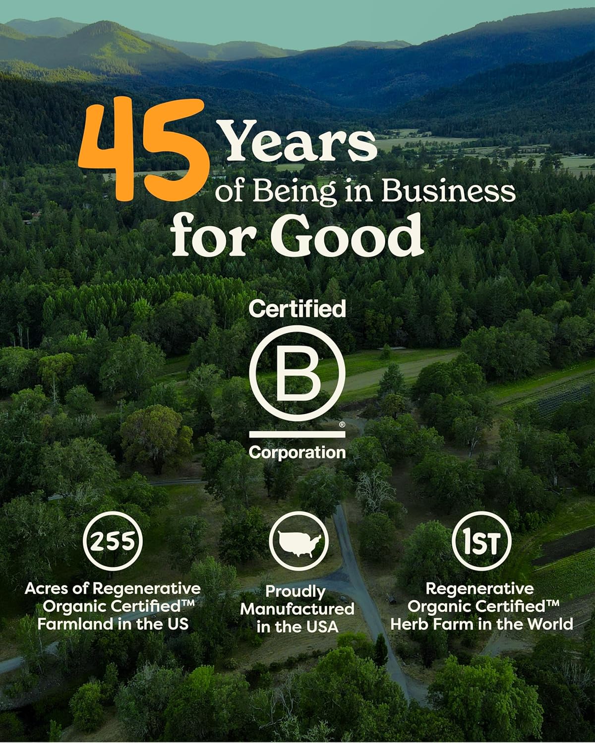 - Prepared from herbs that are Certified-Organically Grown or are Sustainably Wildcrafted in their natural wild habitat