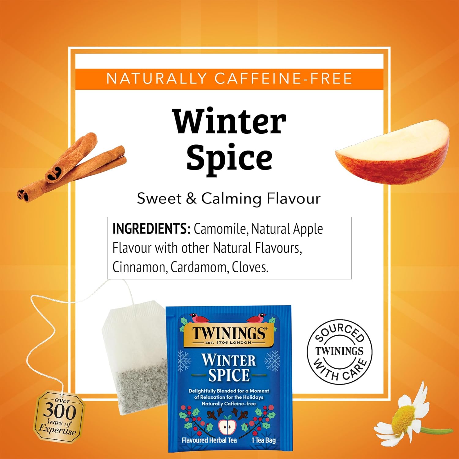 Twinings Winter Spice Herbal Tea Individually Wrapped, 20 Count (Pack of 1), Camomile, Apple, Cinnamon, & Clove, Naturally Caffeine-Free, Enjoy Hot or Iced, 20 Teabags