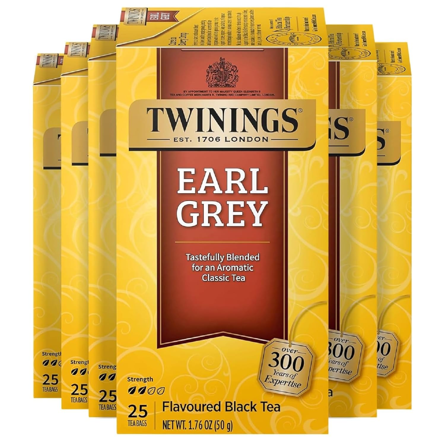 Twinings Earl Grey Black Tea Individually Wrapped Bags, 25 Count (Pack of 6), Flavoured with Citrus and Bergamot, Caffeinated, Enjoy Hot or Iced, 150 Teabags