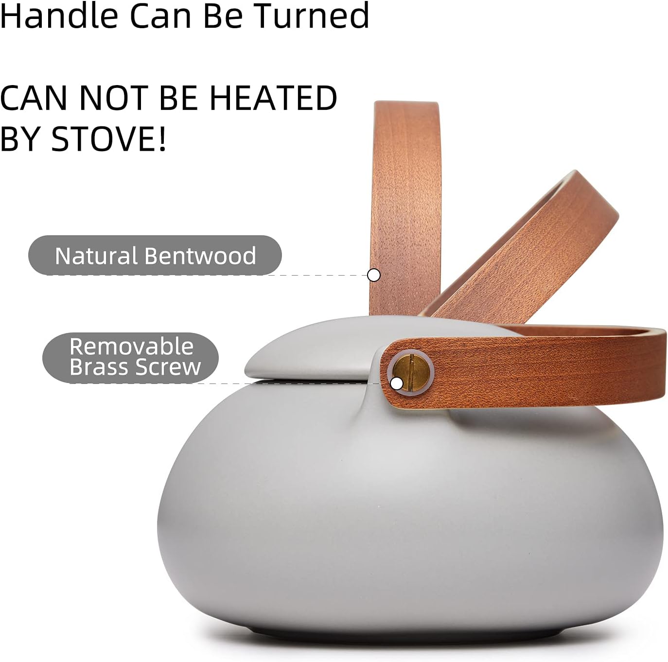 - NATURE BENTWOOD HANDLE, NO DRIPPING -The big plus of this teapot would have to be the bentwood handle that adds a vintage touch to this ceramic teapot. It can be turned 90 ° for easy filling and easily to removed from the side screw. The tea spout is ergonomically designed so that it doesn't drip all over the place, and the 800 ml capacity and 4 cute 130ml tea cups ares perfect for 4 people to enjoy a small round of hot tea. Please tighten the copper screw on the handle before first use.