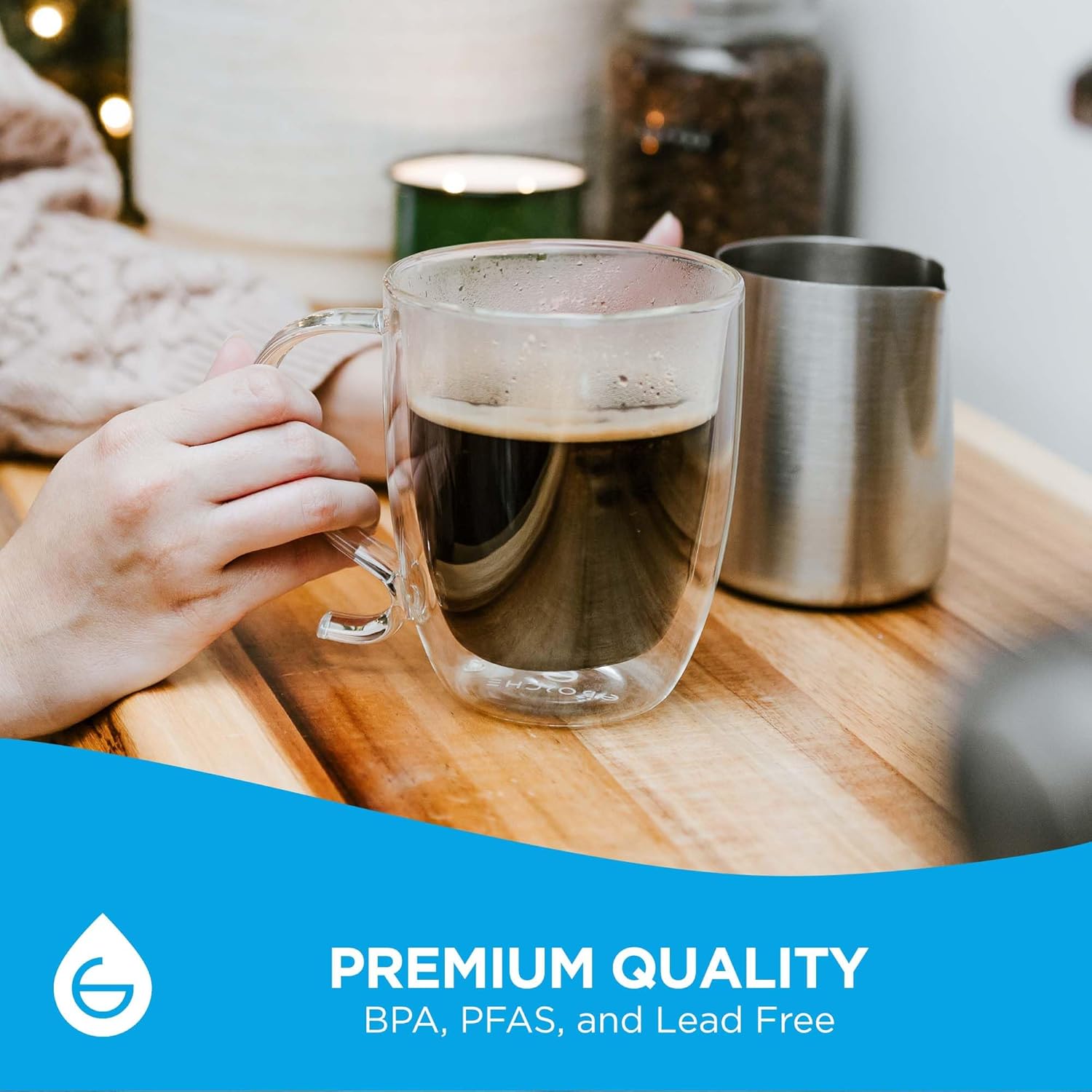 GROSCHE Cyprus 16 fl. oz Double-Wall Glass Mug Set | Espresso, Latte, Tea & More | Hot & Cold Beverages | Stylish & Aesthetic | Dishwasher Safe | Heatproof | Drinking Glassware