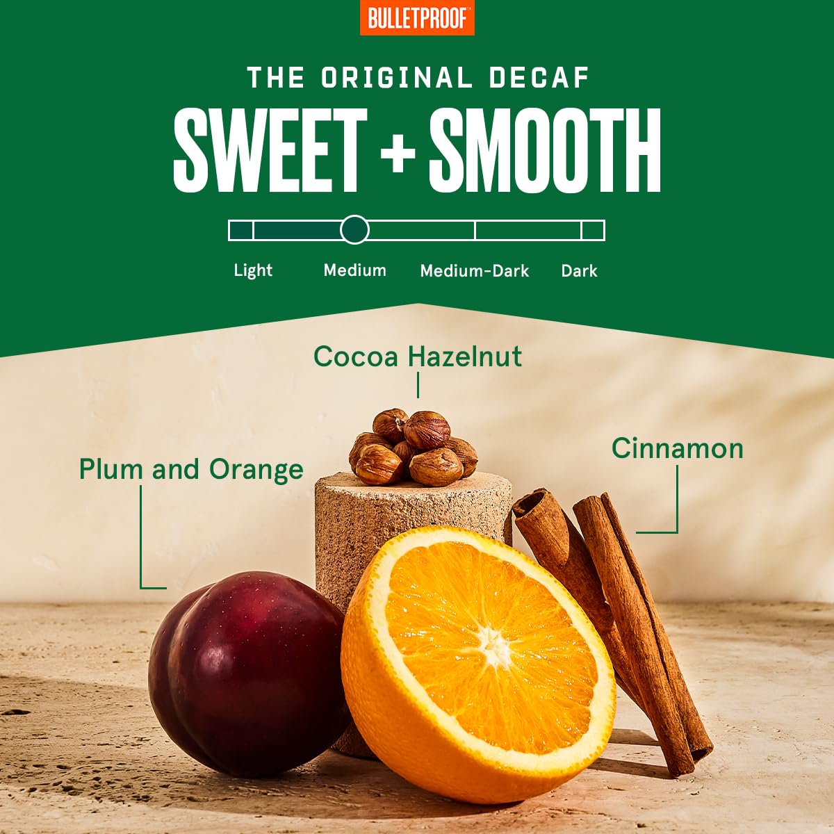 - Unbeatable Taste: Contains one 12-ounce bag of Bulletproof Original Blend Medium Roast Whole Bean Decaf Coffee, a clean coffee with a smooth, well-balanced and premium flavor, Packaging May Vary