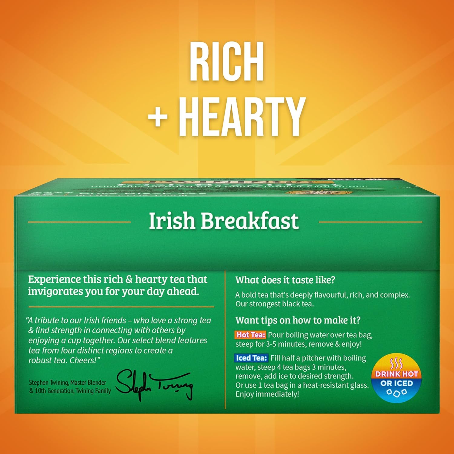 - TWININGS TRIBUTE TO THE IRISH: We've created a bold, rich tea blend that symbolized the Irish love of hearty black tea; Leaves from four regions for added body flavour and strength; Caffeinated, 50 Count, Pack of 6