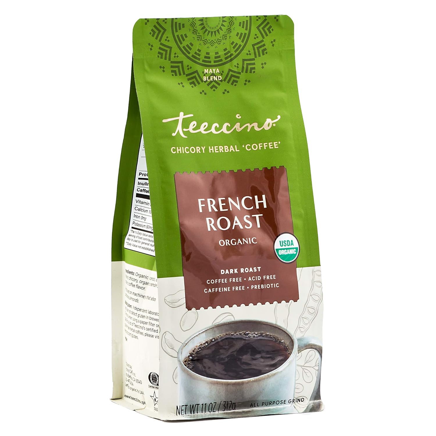 Teeccino French Roast Chicory Coffee Alternative, 11 Ounce: Ground Herbal Coffee That’s Prebiotic, Caffeine-Free & Acid-Free, Dark Roast, with Carob and Chicory, No artificial flavors