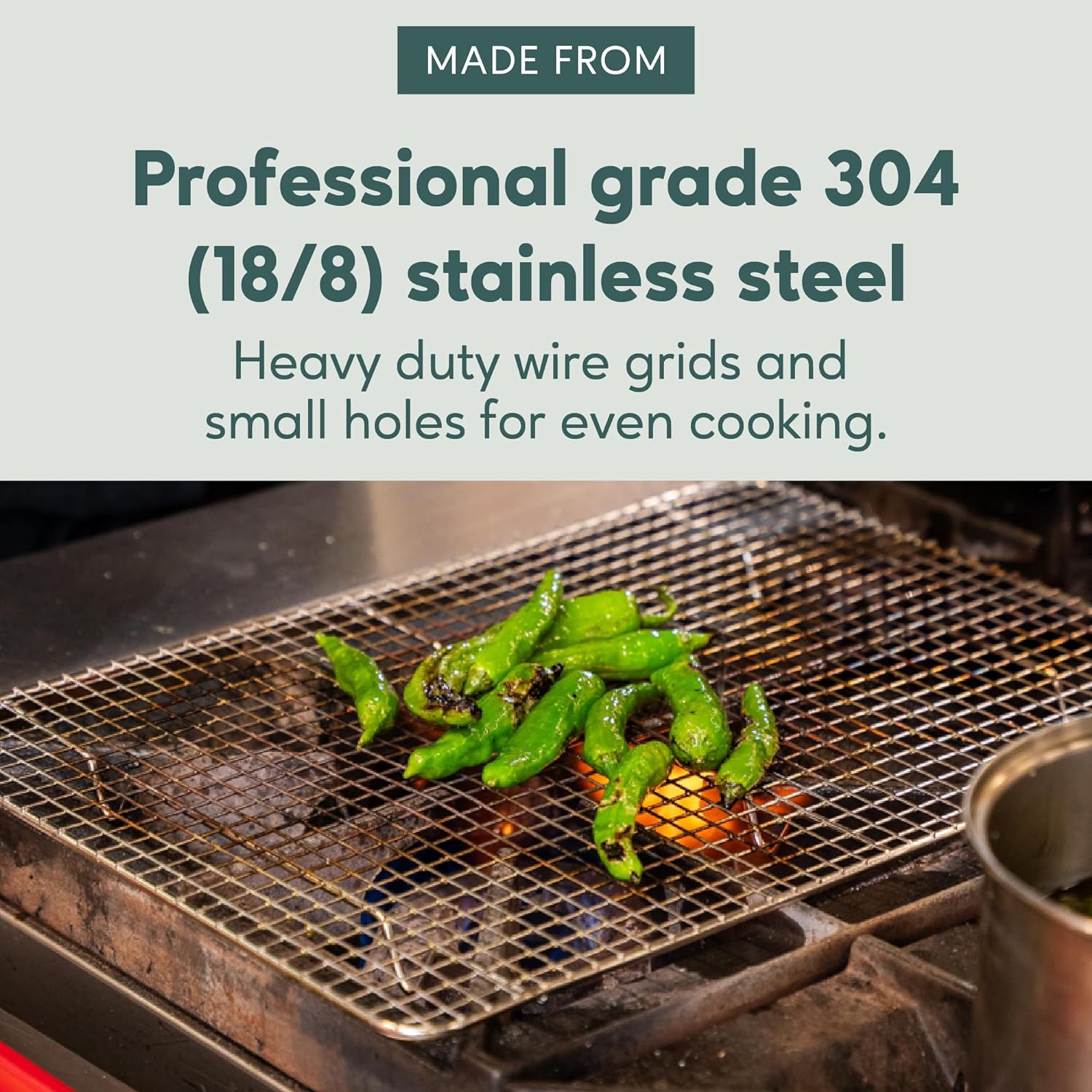 - MULTIPLE USES AND OVEN-SAFE: Our wire rack cooking is designed for roasting, baking, grilling, smoking, drying, and BBQ in the oven. It can handle temperatures up to 575°F due to its high heat tolerance. Use this cooling rack baking for all your culinary needs.