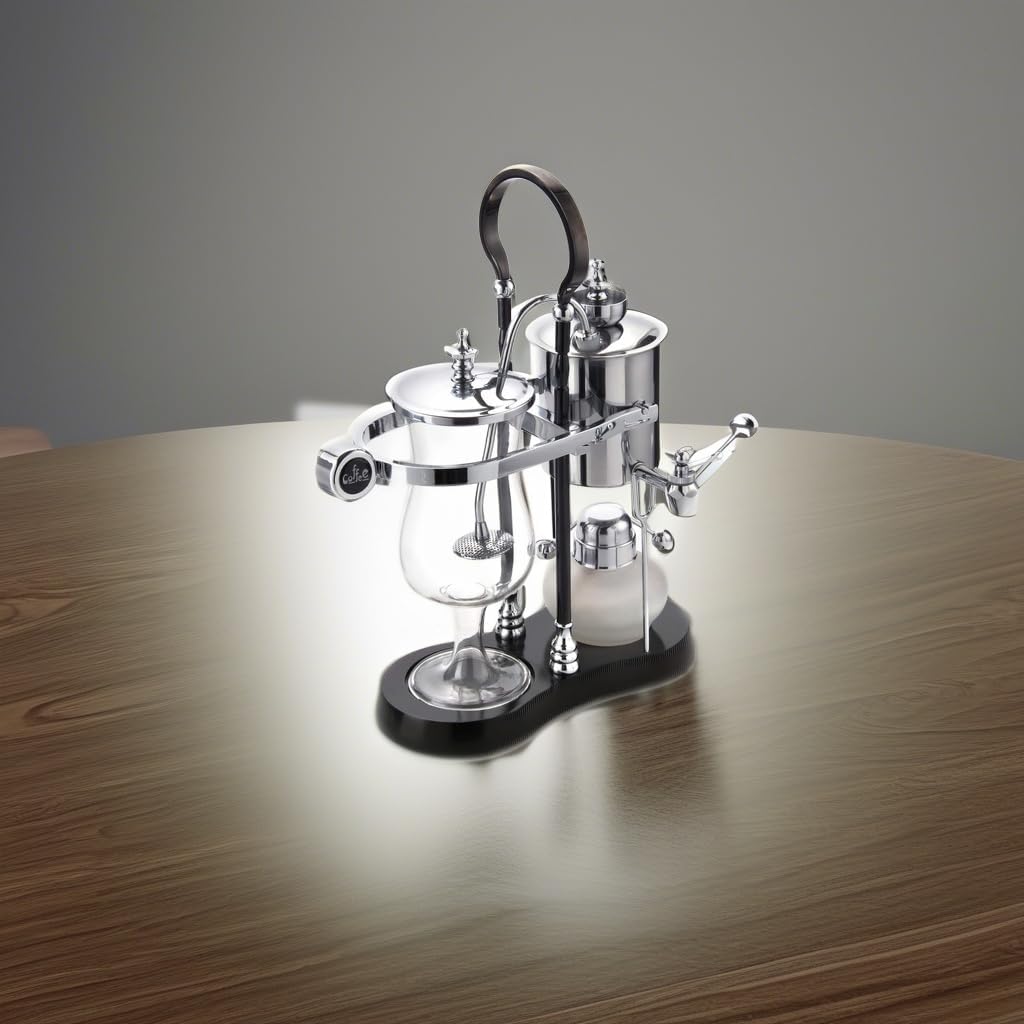 Diguo Belgian/Belgium Luxury Royal Family Balance Syphon Coffee Maker/Siphon Coffee Brewer (Silver - Black Column with Round Handle)