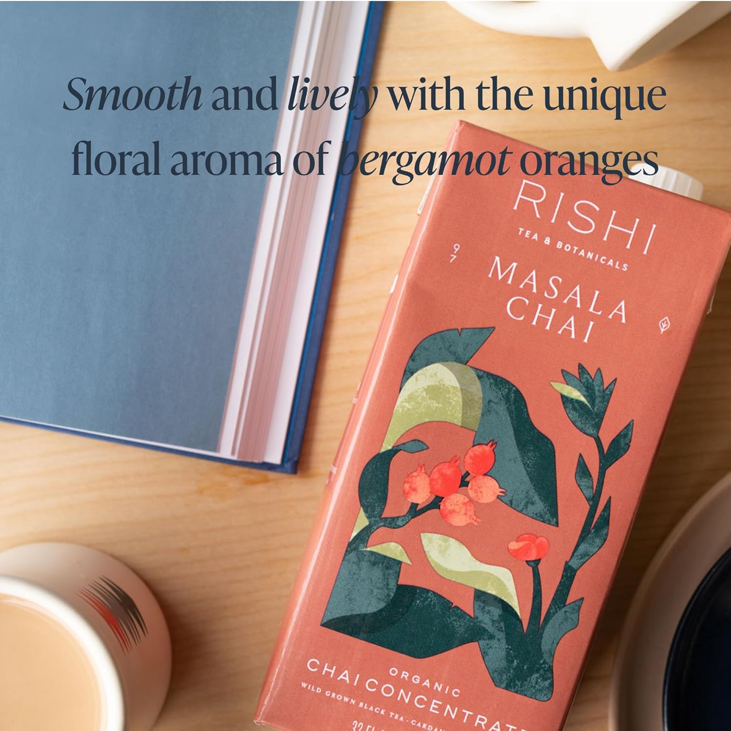 Rishi Tea Masala Chai Latte - Organic Black Tea Concentrate, Easy-to-Serve Hot or Iced Chai Mix - 32 fl oz Carton, 8 Servings (Pack of 12)