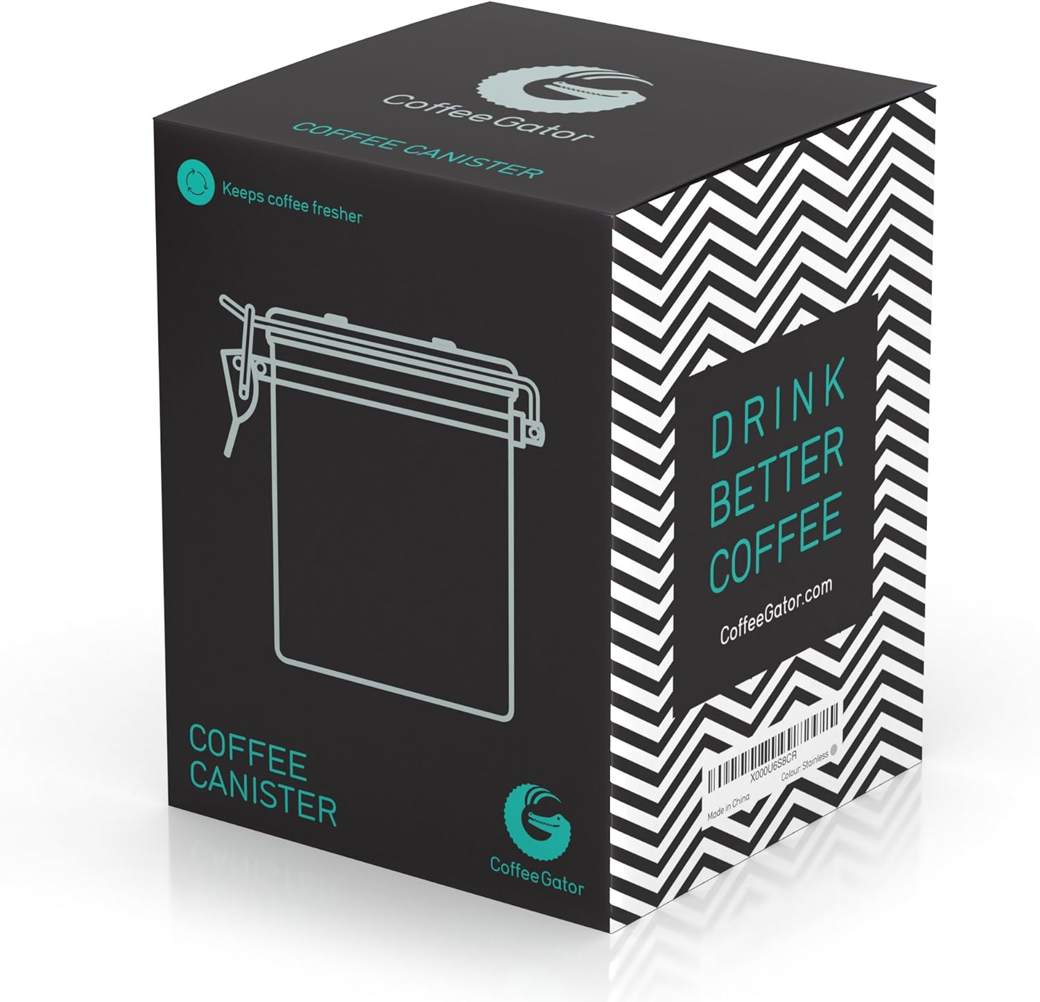 Coffee Gator Coffee Canister, Airtight 16oz Stainless Steel and 4oz Borosilicate Glass Jar Travel Kitchen Food Storage Container with Date Tracker, Scoop for Grounds, Beans, Sugar, Tea, Cookies