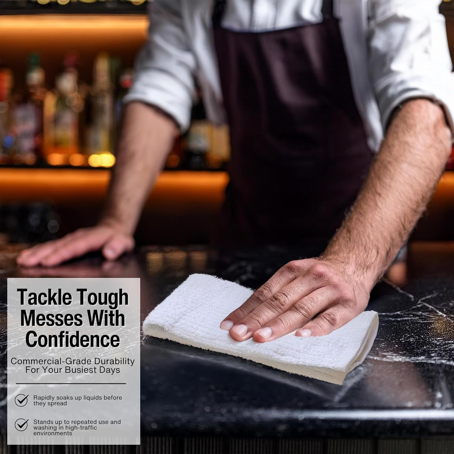 Bar Mop Cleaning Kitchen Dish Cloth Towels,100% Cotton, Machine Washable, Everyday Kitchen Basic Utility Bar Mop Dishcloth Set of 12, White