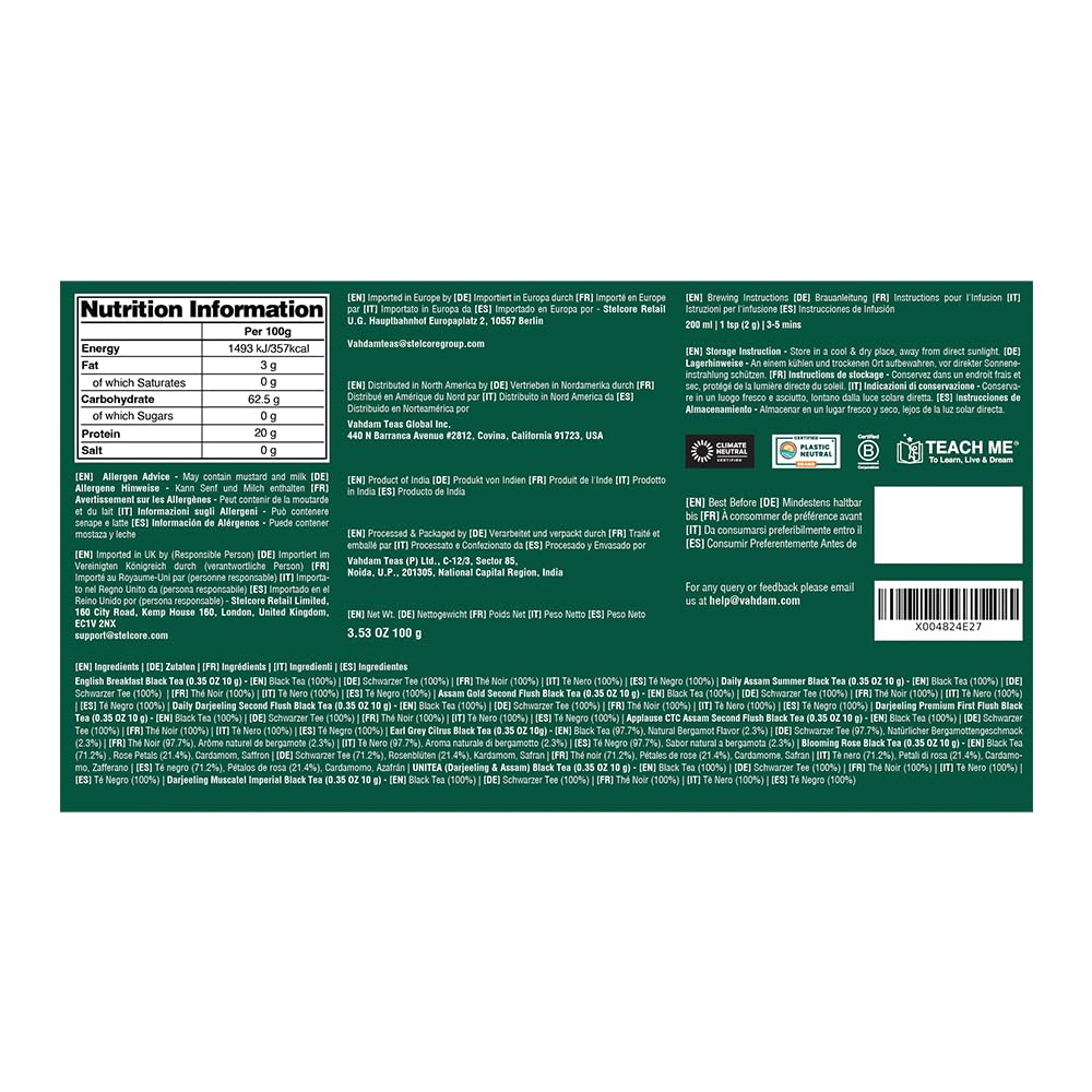- 10 EXCLUSIVE LOOSE LEAF BLACK TEA - An assortment of 10 of our skillfully curated in-house loose-leaf Black tea blends. Experience a diverse range of teas: from robust Classic English Breakfast & Daily Assam Black Teas to the rich profile of Assam Gold and Smoky Assam Souchong Black tea, discover the elegance of Daily Darjeeling and Earl Grey Citrus Black tea.