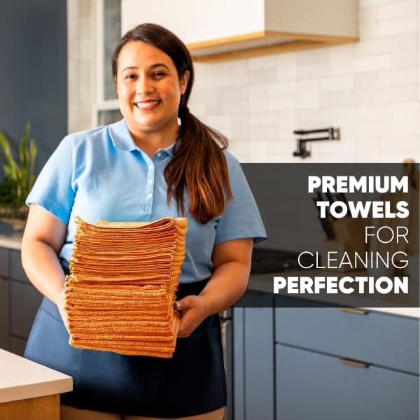 MW Pro Microfiber Cleaning Cloth | Orange | 12 Pack | 16” x 16” | All Purpose Microfiber Towels - Clean, Dust, Polish, Scrub, Absorbent