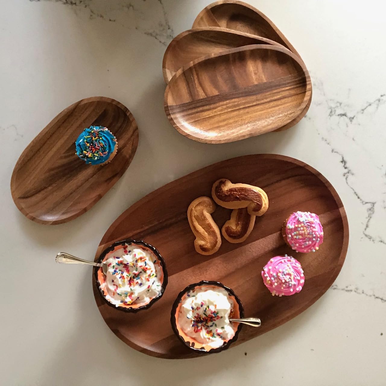 - Set includes 4 individual serving trays each measuring 6" wide and 10" long