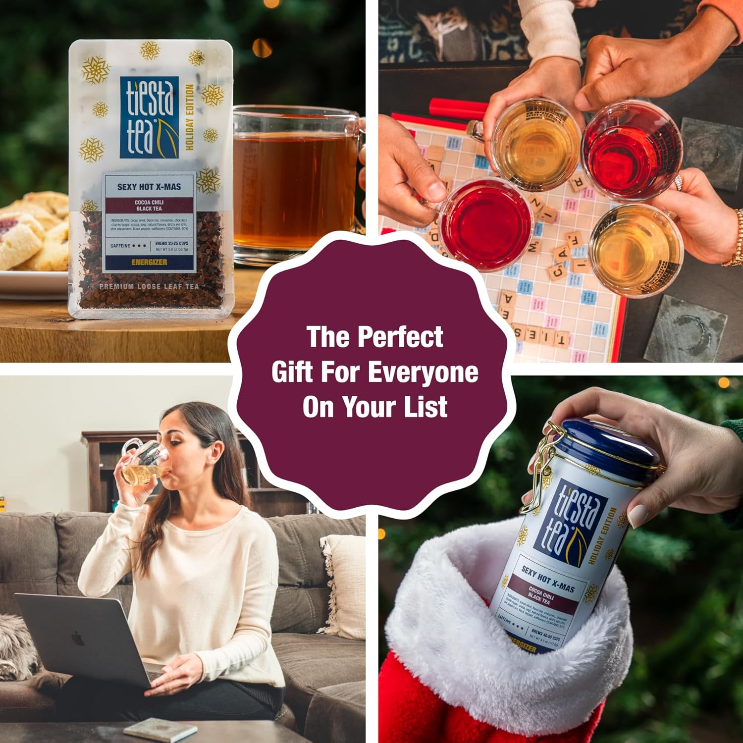 Tiesta Tea - Sexy Hot Christmas, Loose Leaf, Cocoa Chili Black Tea, Premium Blend, High Caffeinated Spicy Black, Make Hot or Iced Tea & Brews Up to 200 Cups, 16oz Resealable Bulk Pouch