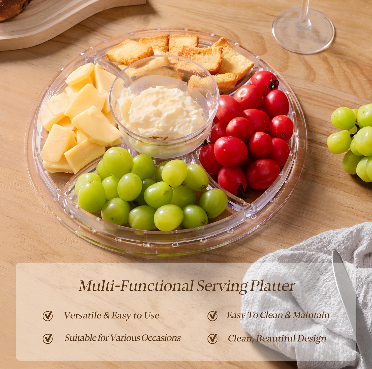 - MULTIFUNCTIONAL: This 6 in 1 multipurpose acrylic cake stand is a unique serving stand with many functions and uses. Use it as a cake plate with a lid, cookie plate, salad bowl, punch bowl, dessert tray, or snack tray. Simply flip over the lid or plate to create any type of serving platter