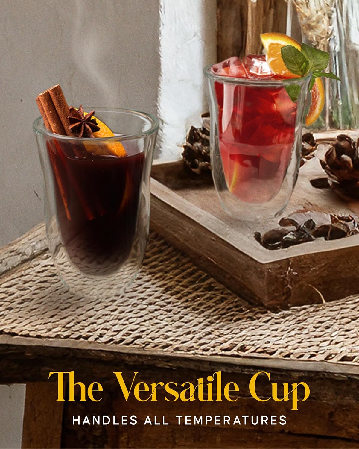 - Enjoy Hot or Cold Drinks Even Longer - Crafted with precision, our double walled glass coffee mugs ensures your hot drinks stay hot and your cold drinks stay cold, allowing you to relish every sip without compromise. Say hello to extended enjoyment with these clear glass coffee mugs that are as versatile as they are stylish. ¡Disfruta de tus bebidas calientes o frías por más tiempo con estas tazas para café de vidrio transparente de Kitchables!