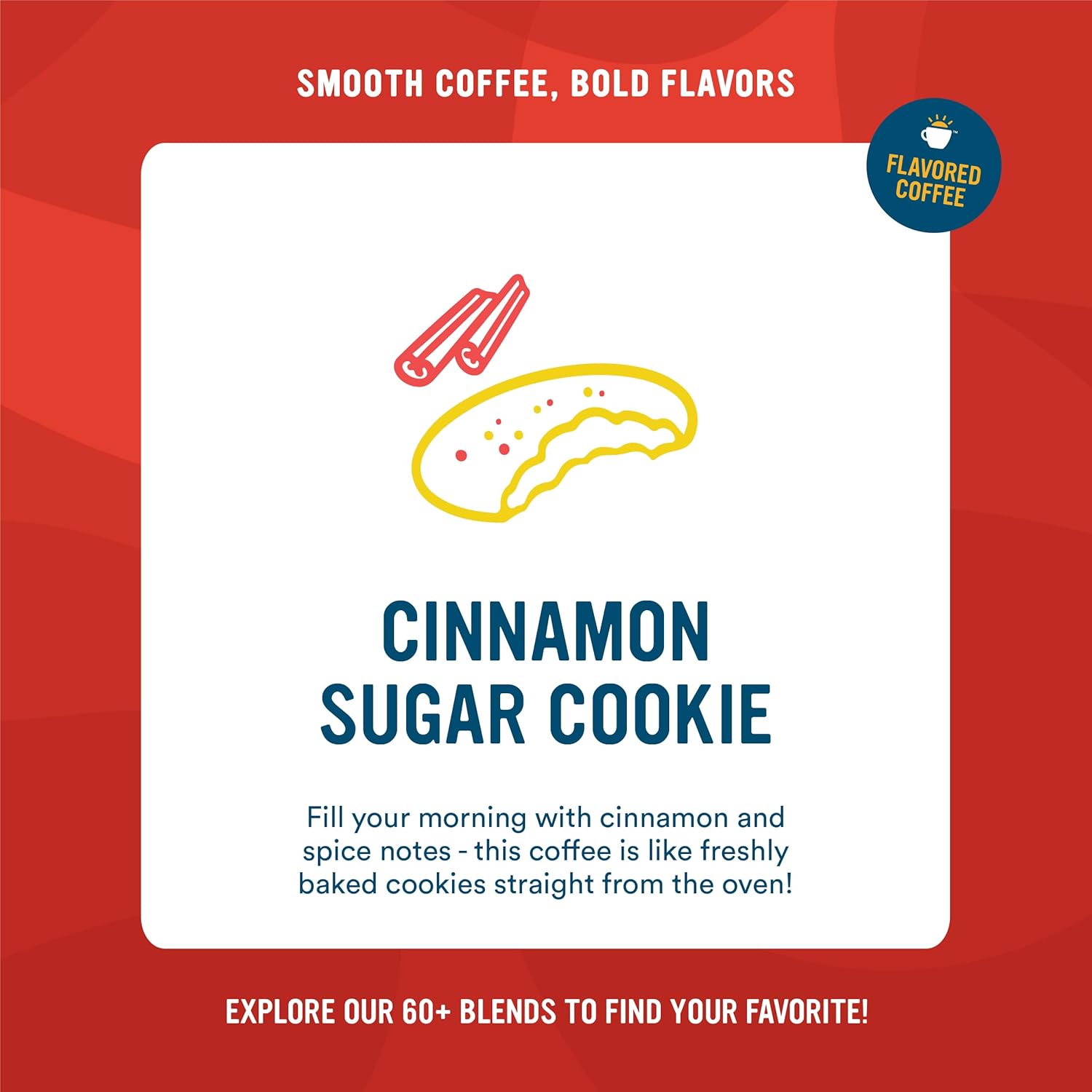 - QUICK AND EASY: One box of 12 Cinnamon Sugar Cookie single serve, compostable, coffee pods. Cameron's Coffee strives to provide the convenience of a single serve pod with the quality of café brewed coffee.