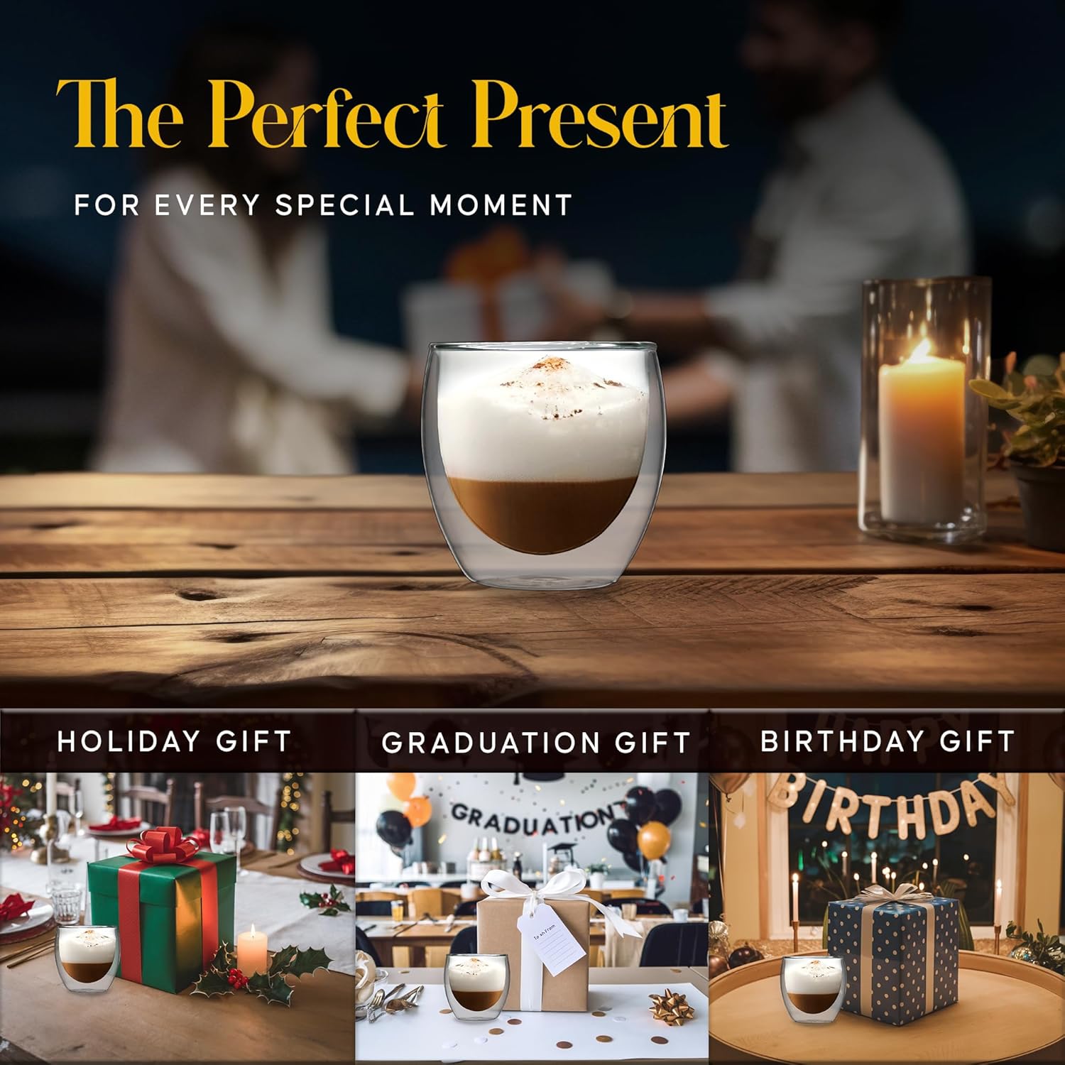 - Thoughtful Gift For Any Occasion - Enjoying your cappuccino or latte mug? Share the joy with others! Functional and stylish, Kitchables’ double walled glass coffee mugs are practical, memorable gifts for your loved ones.