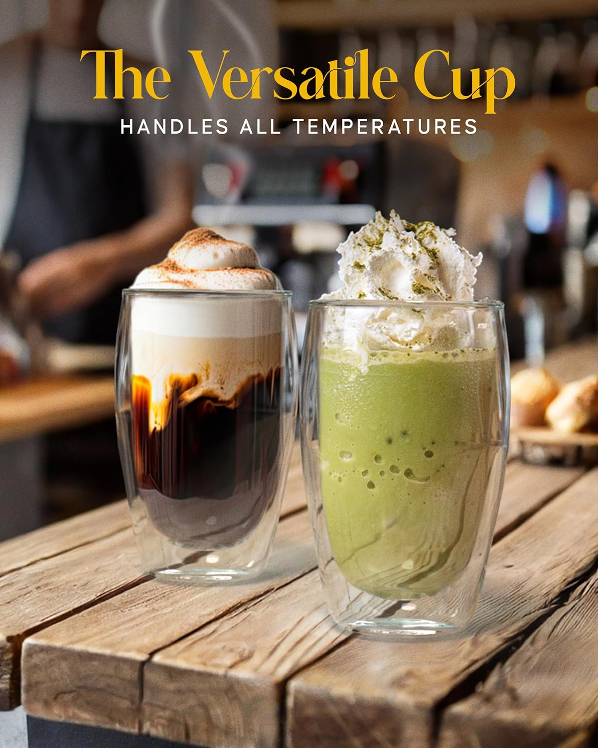- Enjoy Hot or Cold Drinks Even Longer - Crafted with precision, our double walled glass coffee mugs ensures your hot drinks stay hot and your cold drinks stay cold, allowing you to relish every sip without compromise. Say hello to extended enjoyment with these clear glass coffee mugs that are as versatile as they are stylish. ¡Disfruta de tus bebidas calientes o frías por más tiempo con estas tazas para café de vidrio transparente de Kitchables!