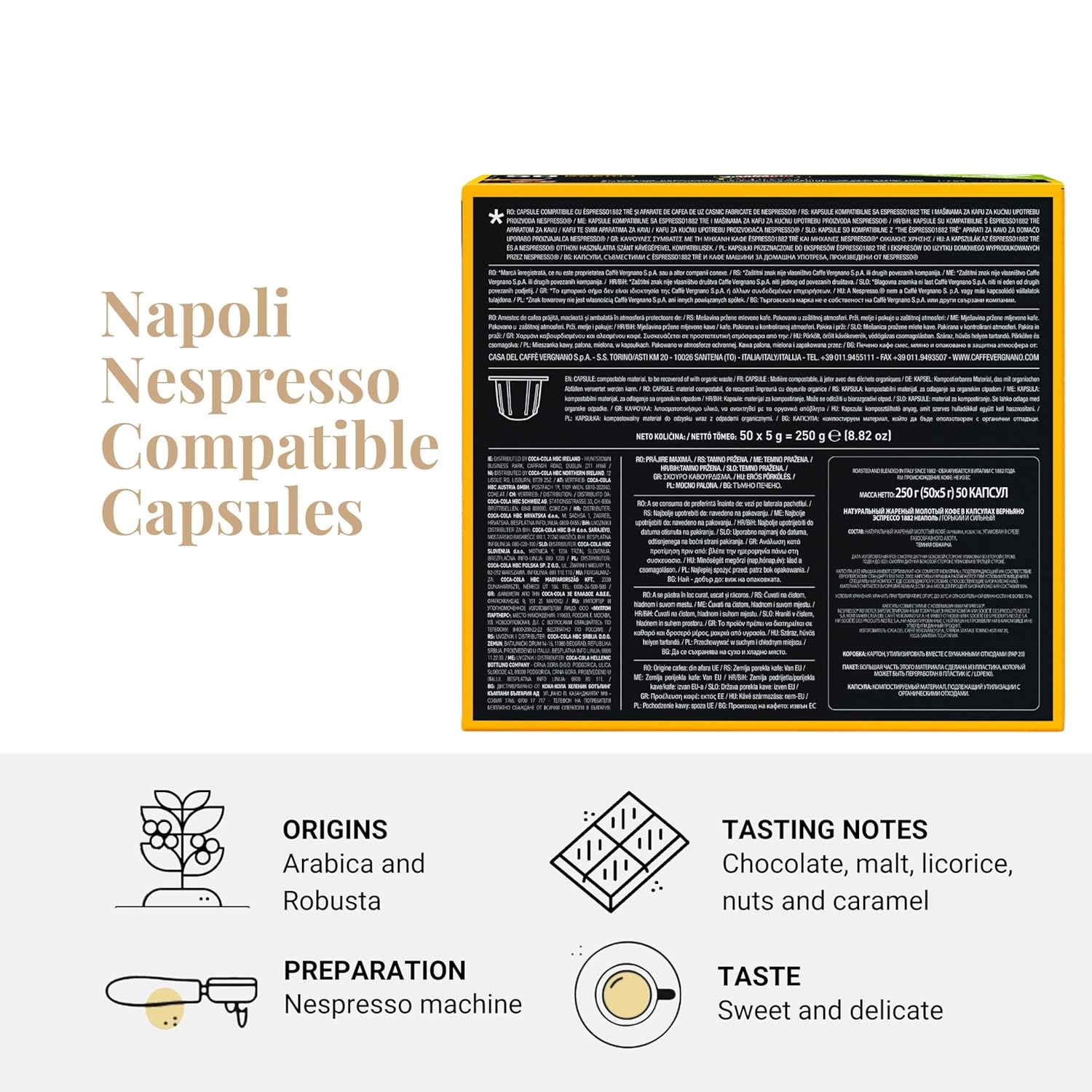 - Designed for Nespresso Machines – Caffè Vergnano Napoli espresso capsules are fully compatible with Nespresso coffee machines, offering seamless preparation for a quick and easy espresso. Enjoy a bold, Italian-style espresso at home with these convenient single-serve coffee capsules designed for busy coffee aficionados.