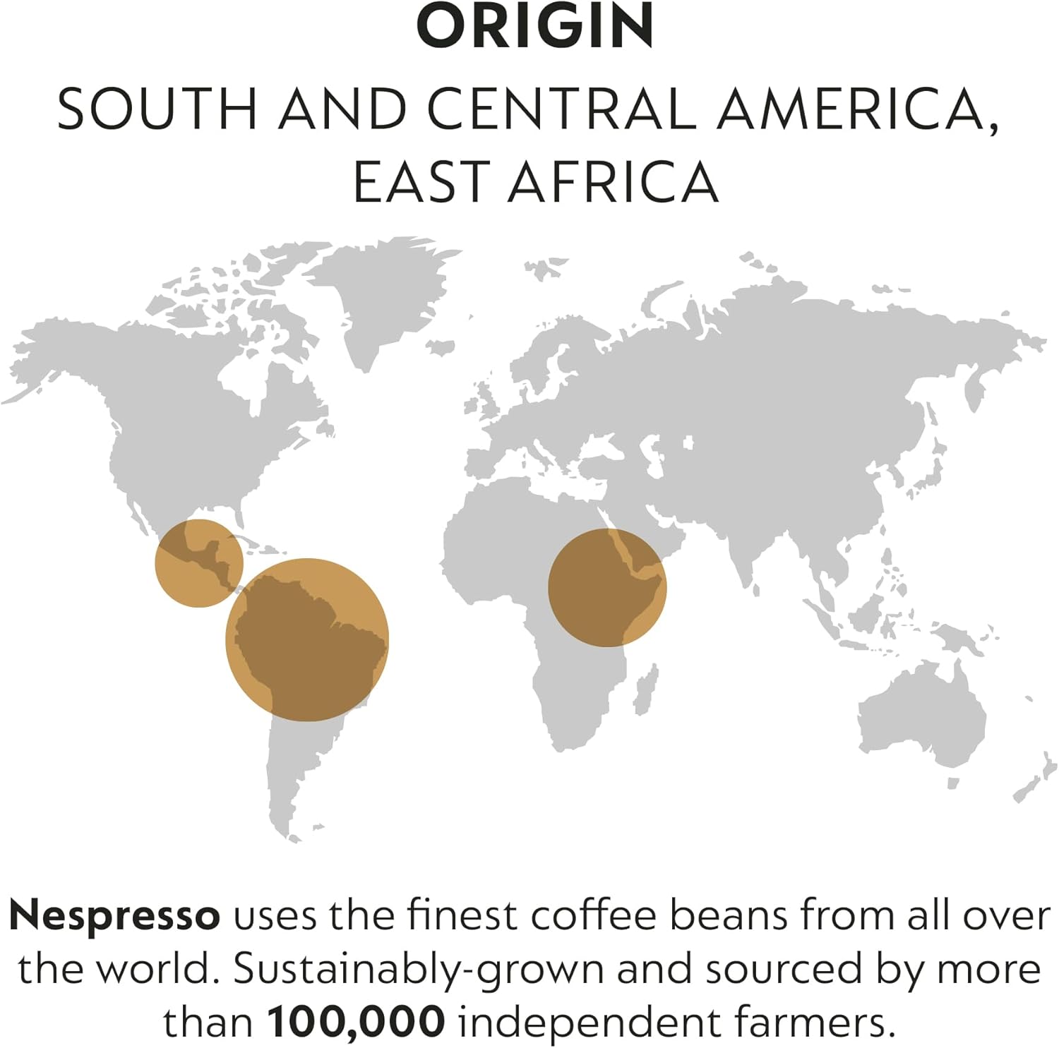 - COFFEE ORIGIN: Made with South American and East African Arabicas plus a touch of Robusta, these dark roast coffee pods are slow-roasted to Nespresso Intensity 10. The result: a bold, roasty cup with lively fruity notes and a hint of acidity.