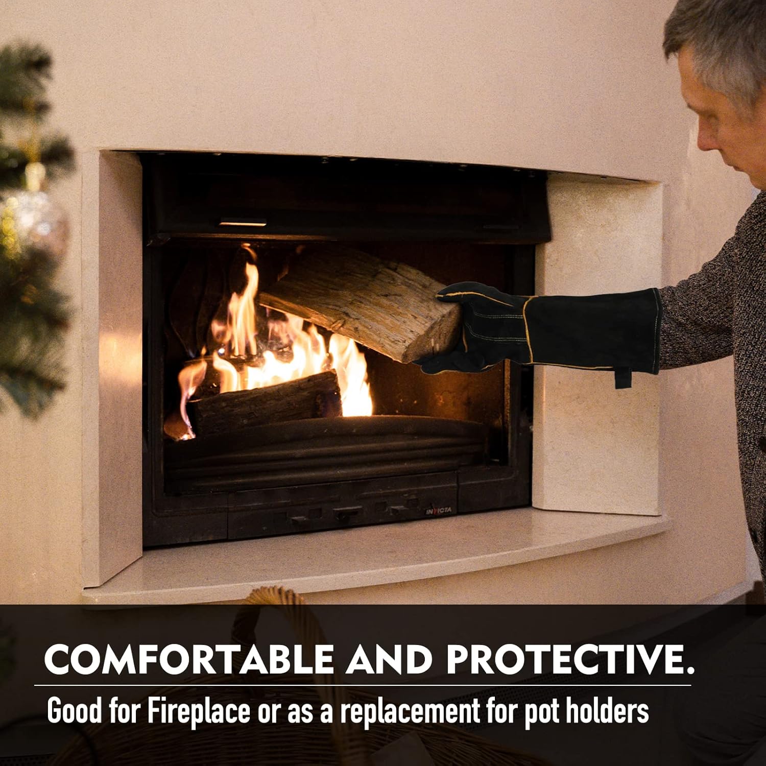 - Heat Resistant Protection: Premium heavy duty leather and heat resistant Kevlar thread protect your hands in even the most extreme conditions.Excellent performance in heavy-duty welding, gripping hot stuff such as stove & cookware & burning coal or firewood.