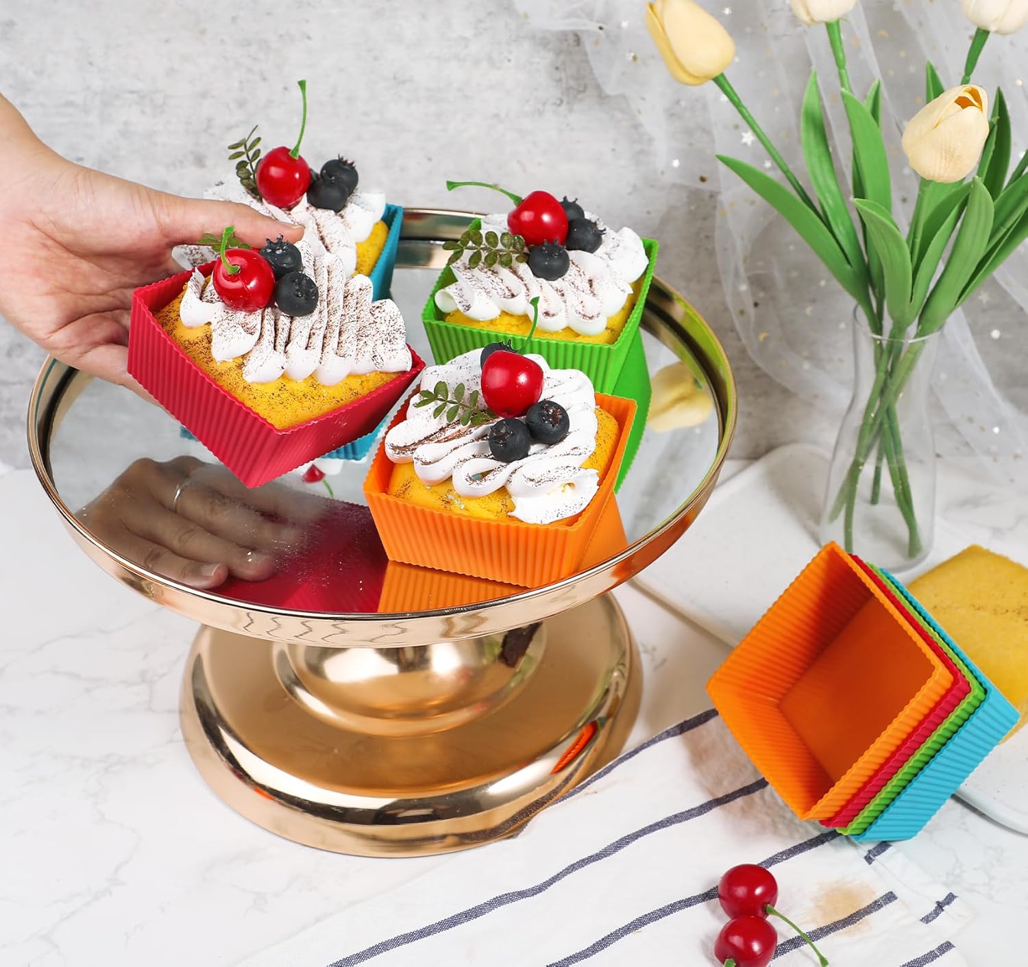 - ★4 Vibrant colors will makes baking even more fun. Best gift for both adults and kids. Perfect for baking breads, small loafs, muffins, cupcakes sorting small items.