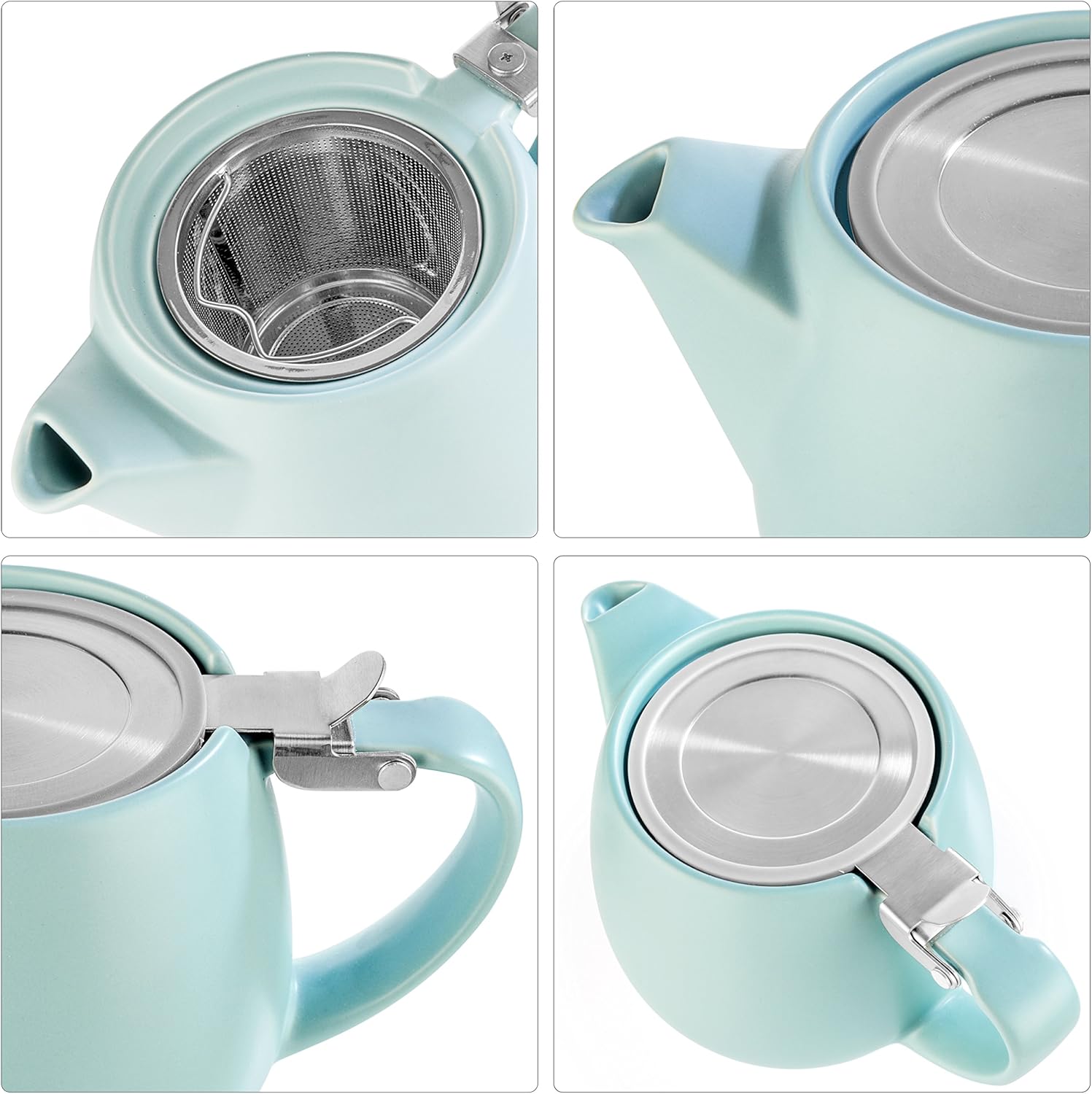- CONVENIENT AND FUNCTIONAL DESIGN. Tealyra PLUTO ceramic teapot is equipped with a stainless steel cover, which is opens widely and conveniently, without interfering with the filling of the tea leaves, and closes tightly during the welding process. Drip-less spout allows you to pour a drink into a cup without spilling.