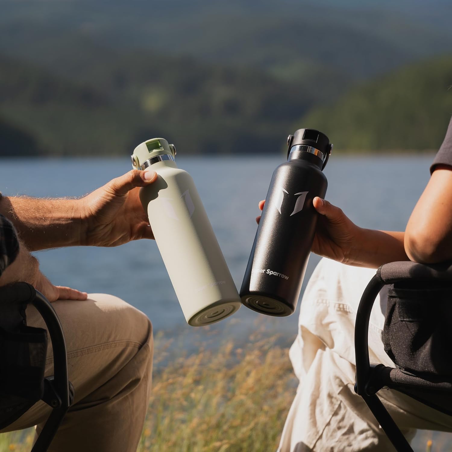 Super Sparrow Insulated Water Bottle - 17 Oz / 25 Oz / 32 Oz - Standard Mouth FlipFlow Flask - BPA Free, Leak Proof Drink Bottle- Ergonomic Straw Water Bottles for Work, Gym, Travel, Sports