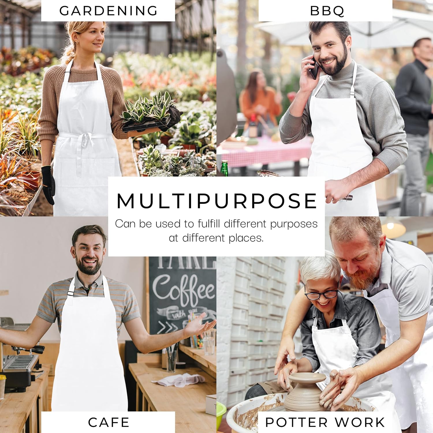 - Premium Quality: Crafted from 100% cotton, White apron offers exceptional breathability and comfort for extended wear, ensuring you stay cool and dry even during long hours of use.