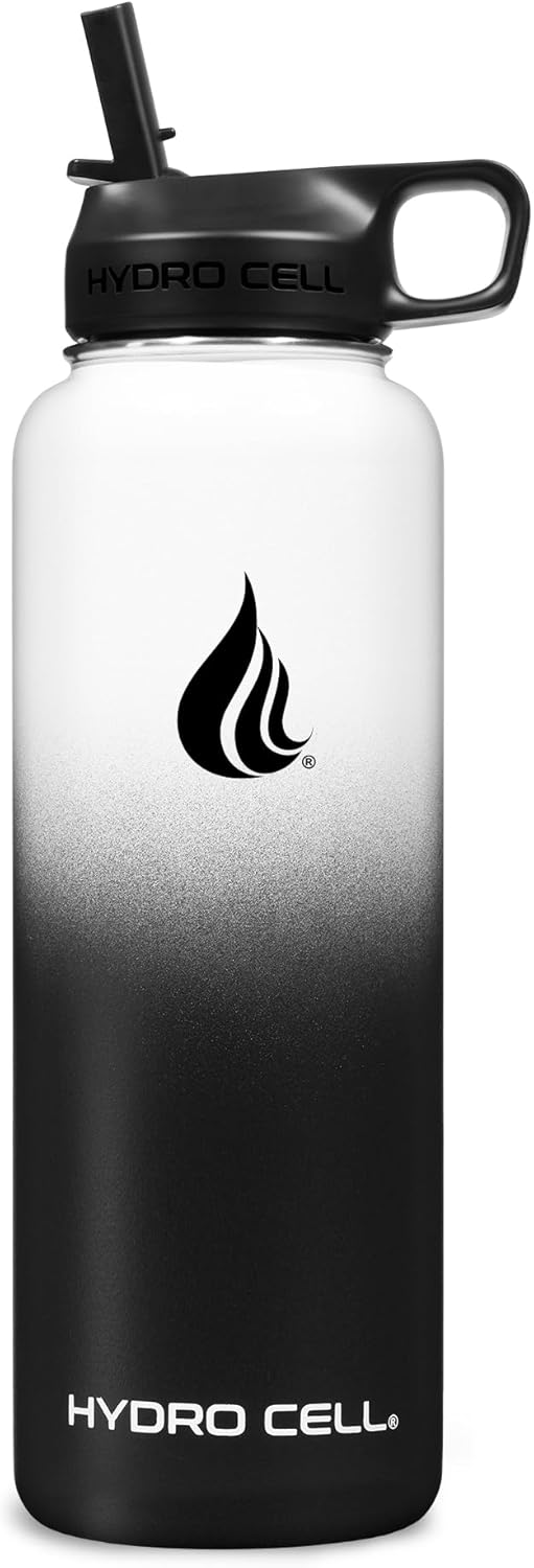 HYDRO CELL Stainless Steel Insulated Water Bottle with Straw - For Cold & Hot Drinks - Metal Vacuum Flask with Screw Cap and Modern Leakproof Sport Thermos for Adults (Black/White 40oz)