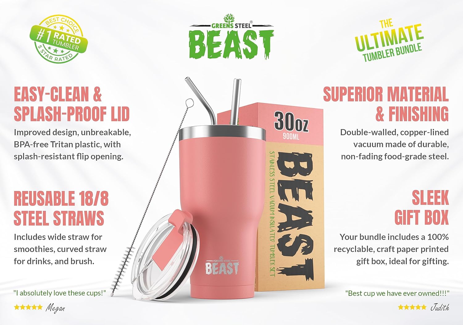 Beast 30 oz Tumbler Stainless Steel Vacuum Insulated Coffee Ice Cup Double Wall Travel Flask (Blossom Pink)