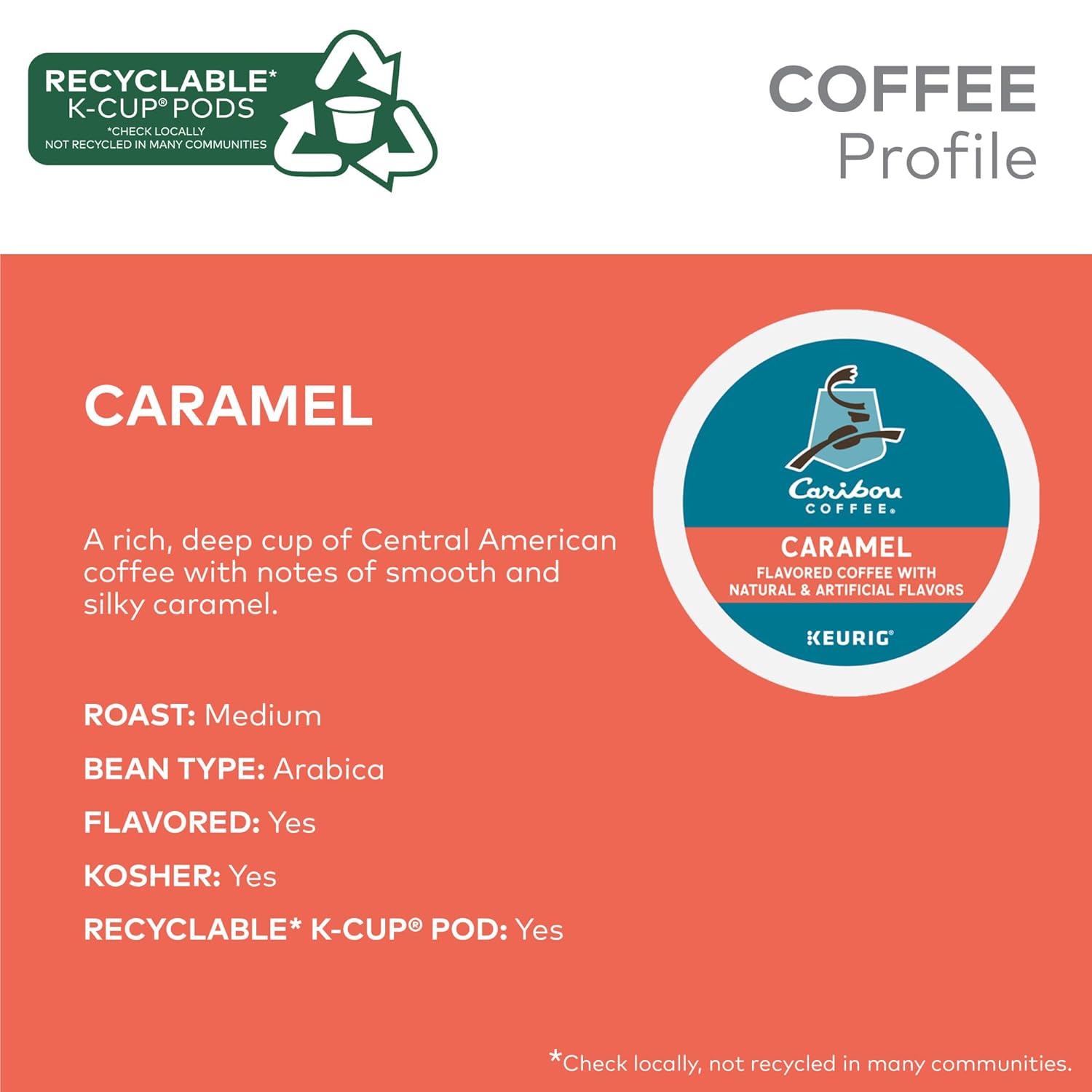 Caribou Coffee Caramel Flavored Coffee, Single Serve Keurig K-Cup Pods, Medium Roast Coffee, 96-Count Box (Pack of 4)