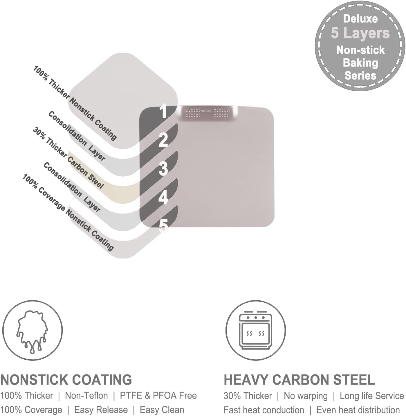 - Commercial Grade : Adopts thickened 0.8mm carbon steel to accelerate even heat. Strengthened edge to convenient use and avoid warping. Ensure longer service life