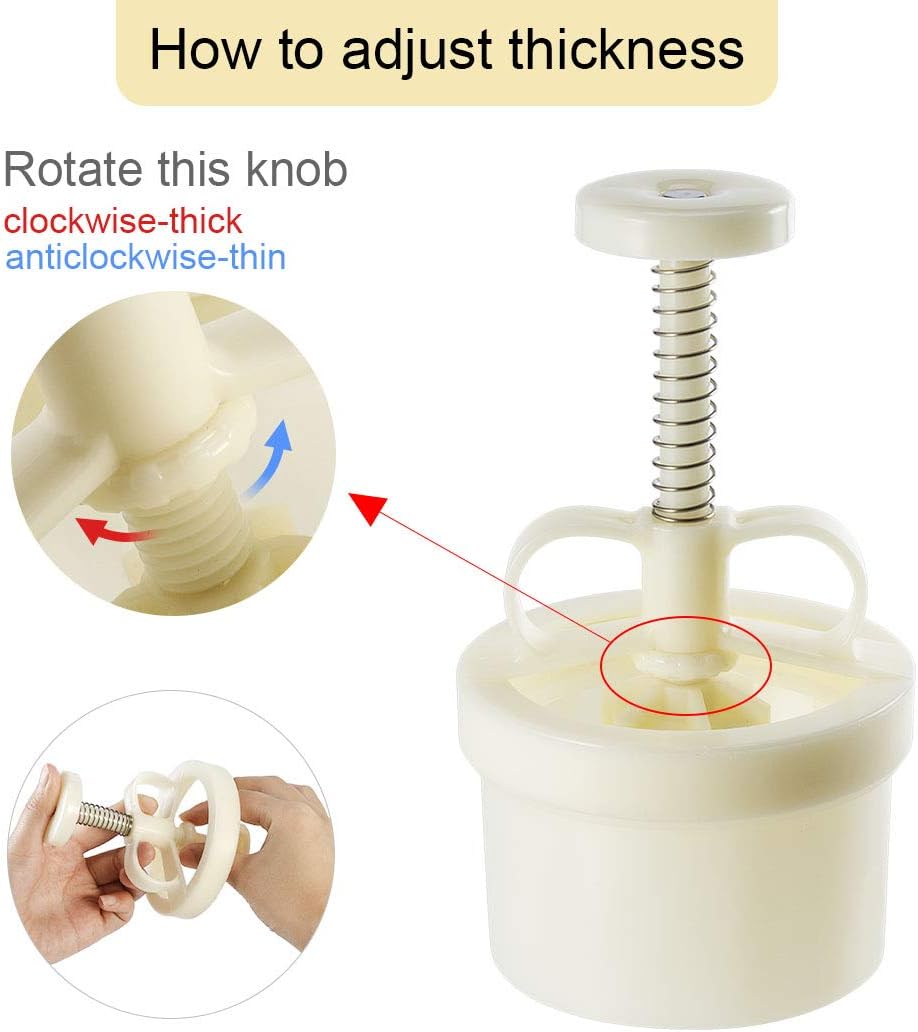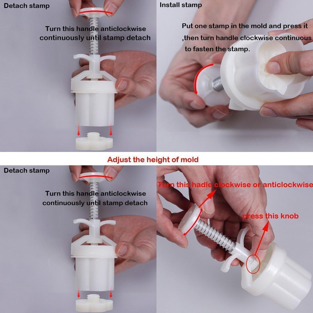 - Comes with 5 stamps (3.07 inch diameter) with various of pattern, you can adjust the height of mold by turn the knob on the handle to make different sizes of cookies or mooncakes