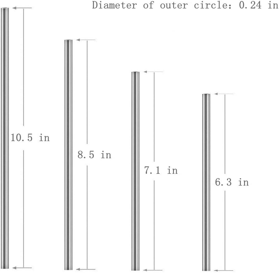 - 3. 20 PCS, 4 SIZE: Length: 6.3'', 7.1'', 8.5'', 10.5'' Outer Diameter: 1/4 inch/ 6 mm (BGMAX reusable drinking straws)