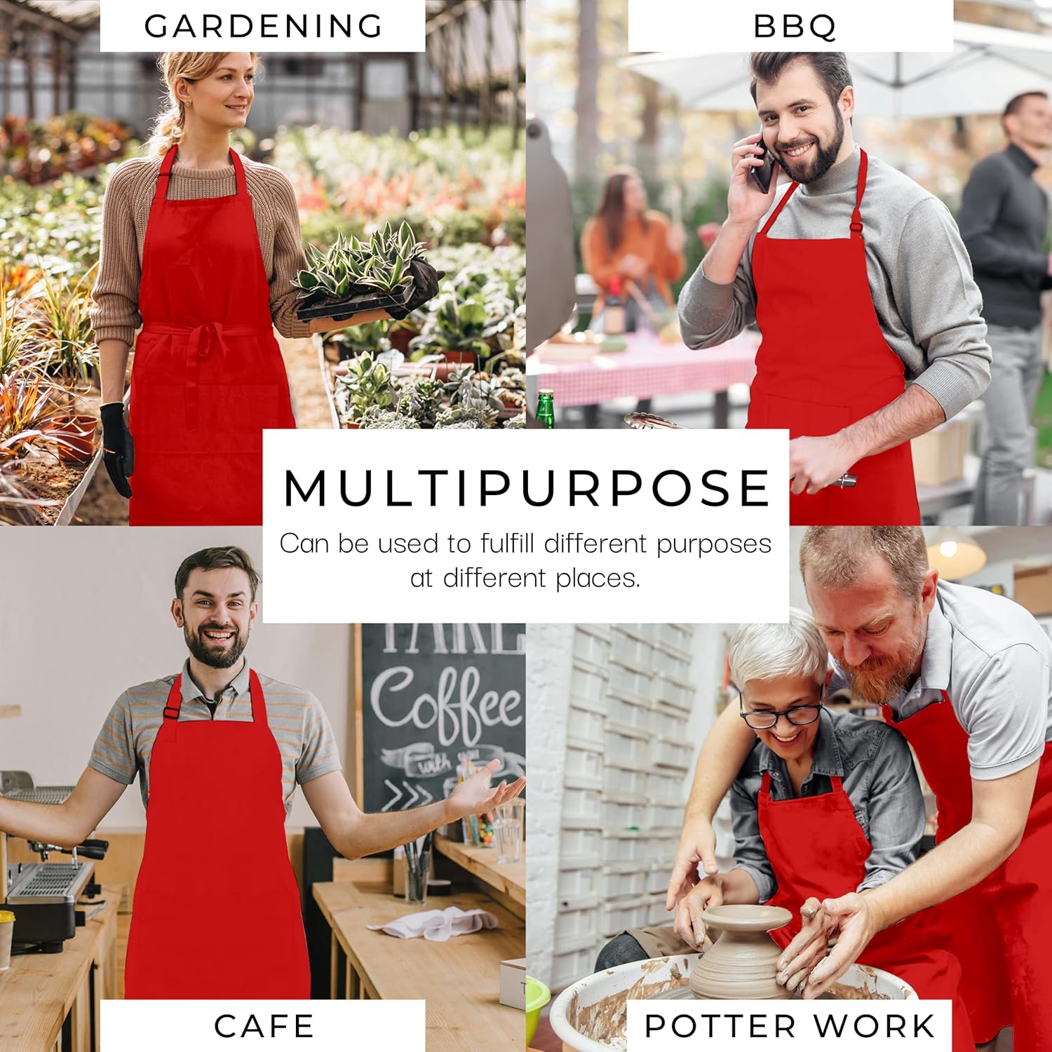 - Premium Quality: Crafted from 100% cotton, Red set of 10 apron offers exceptional breathability and comfort for extended wear, ensuring you stay cool and dry even during long hours of use.