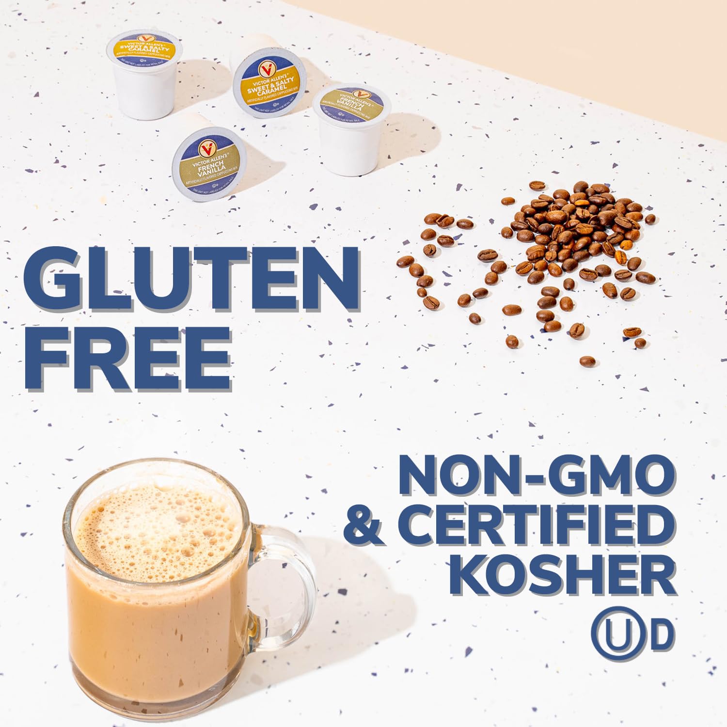 - Contains 6 boxes of 12 pods of Victor Allen's Sweet & Salty Caramel Cappuccino Single Serve Pods (72 pods total)