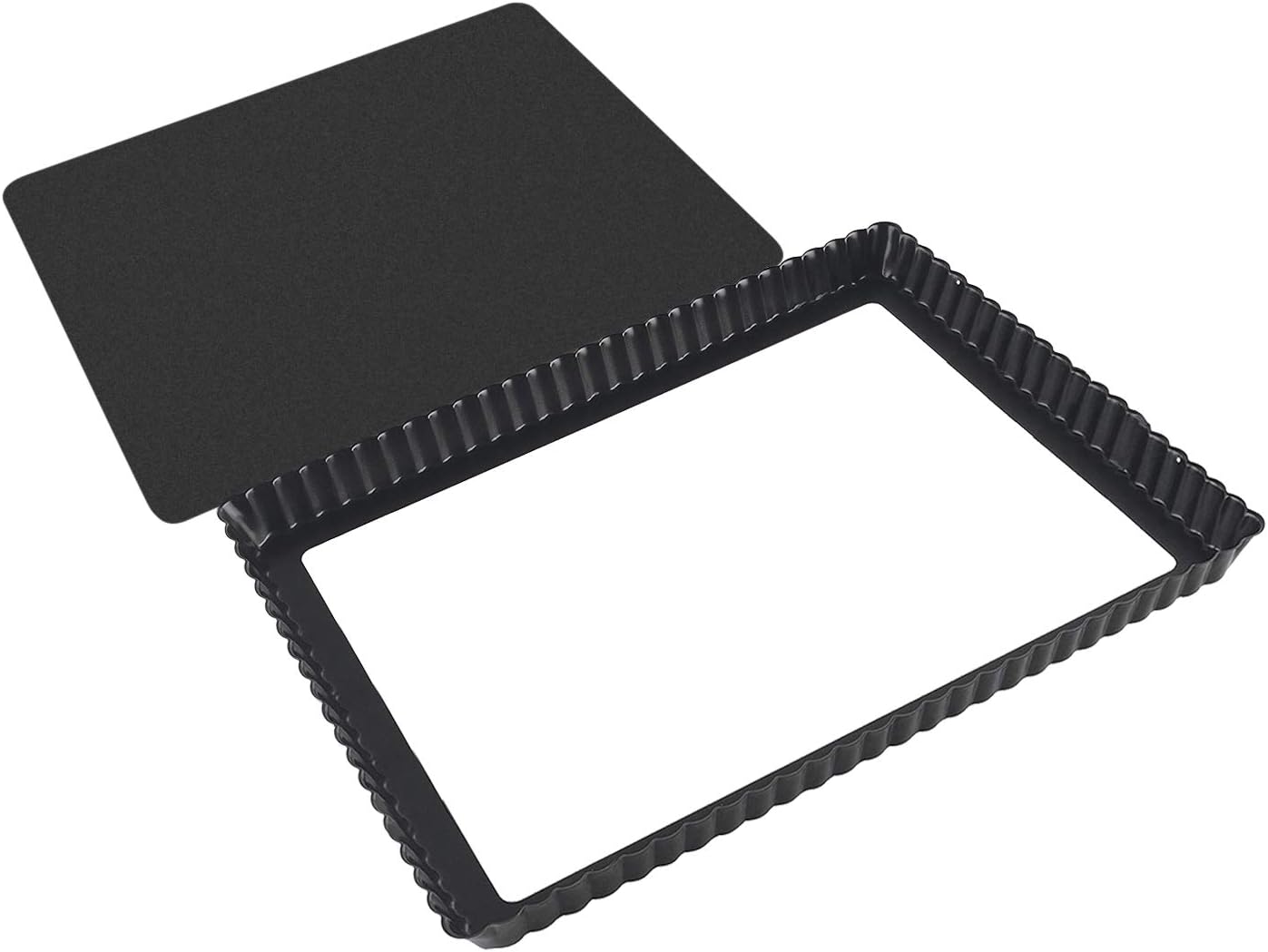 Rectangular Tart Pie Pan Flan Quiche Cheese Molds with Removeable Release Bottom Fluted - 12.8 x 8.5 Inch