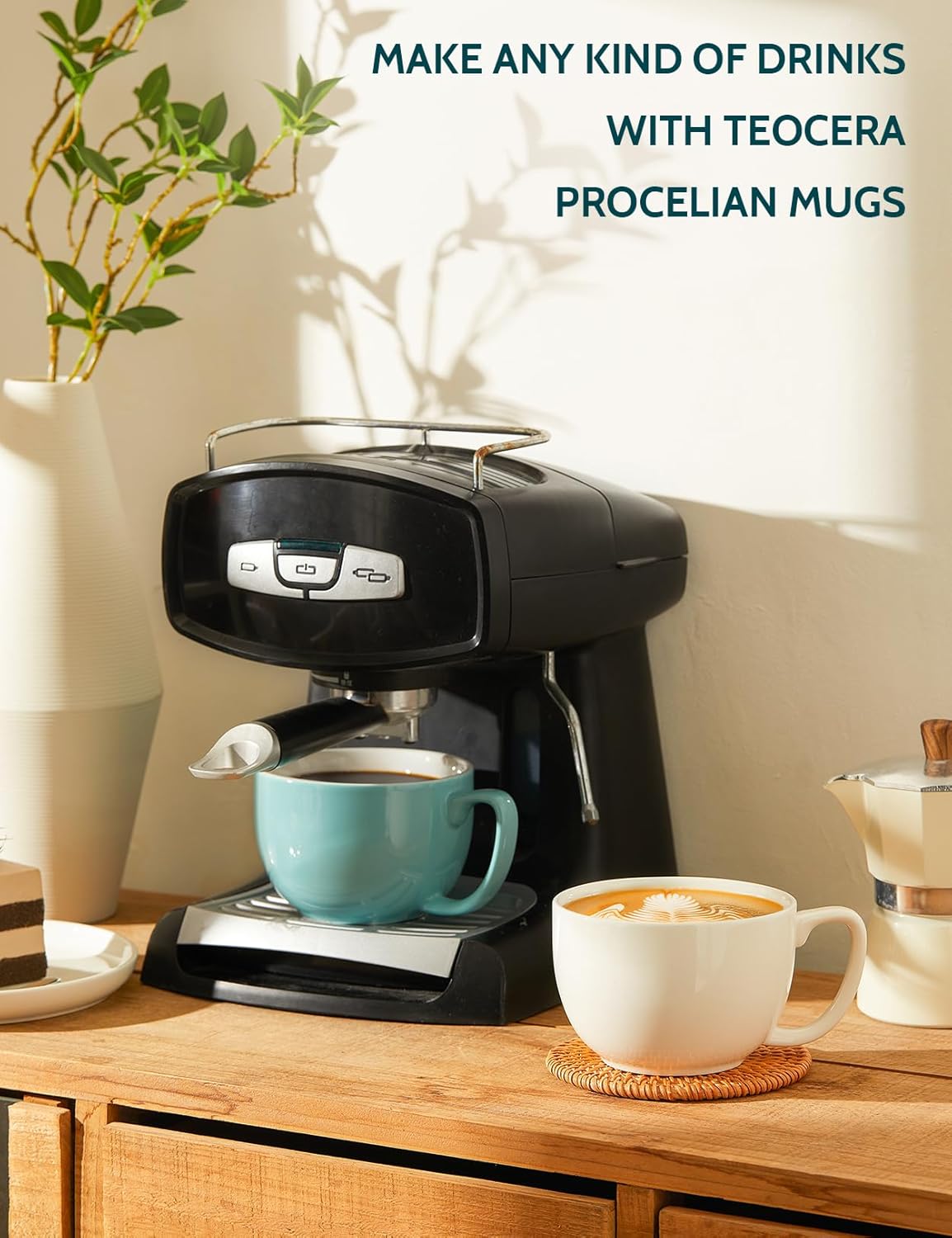 - Wide Mugs, A Favorite of Latte Lovers - Normal coffee mugs are not big enough to make the perfect latte. Teocera white mugs have a wide opening(4.6 inches) to distribute the milk foam into the coffee evenly, creating latte art. Everyone has a chance to be a barista.