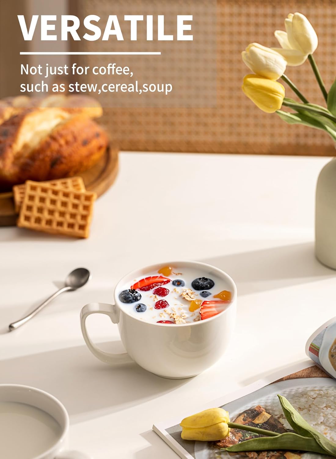 Teocera 16oz Large Coffee Mugs Set of 4 - Thick White Porcelain Cups for Cappuccino, Latte, Tea & Hot Chocolate - Dishwasher Safe Ceramic with Comfort Grip Handles