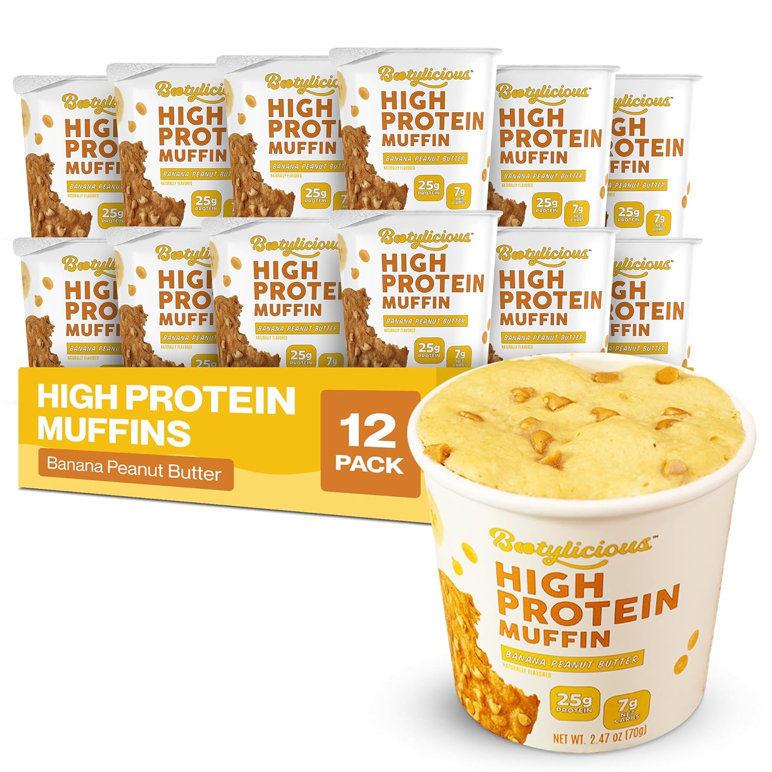 Bootylicious | High-Protein Muffin | 25g Protein, 7g Net Carbs, 2.32-2.75oz Cup, 12-Pack (Banana Peanut Butter)