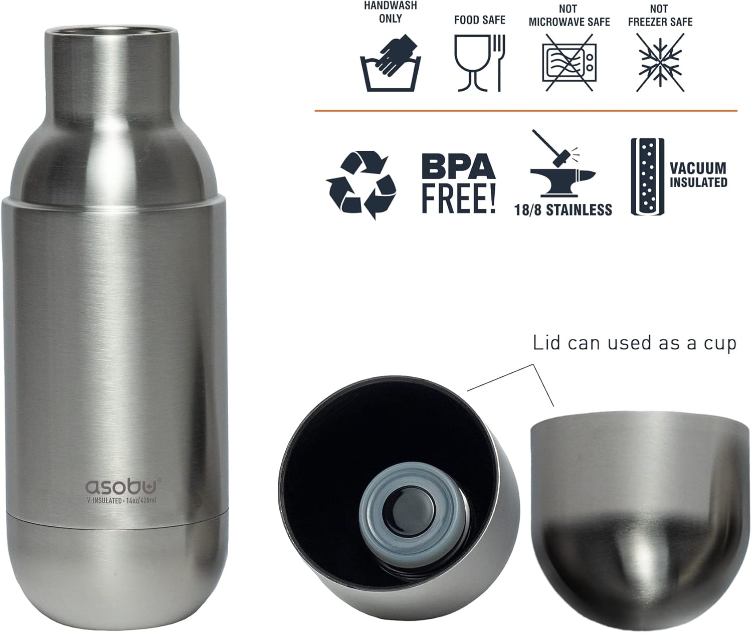 - CUP LIKE LID – Besides giving the bottle a unique capsule-like look the lid of the Orb bottle doubles as a cup for an elegant drinking experience.