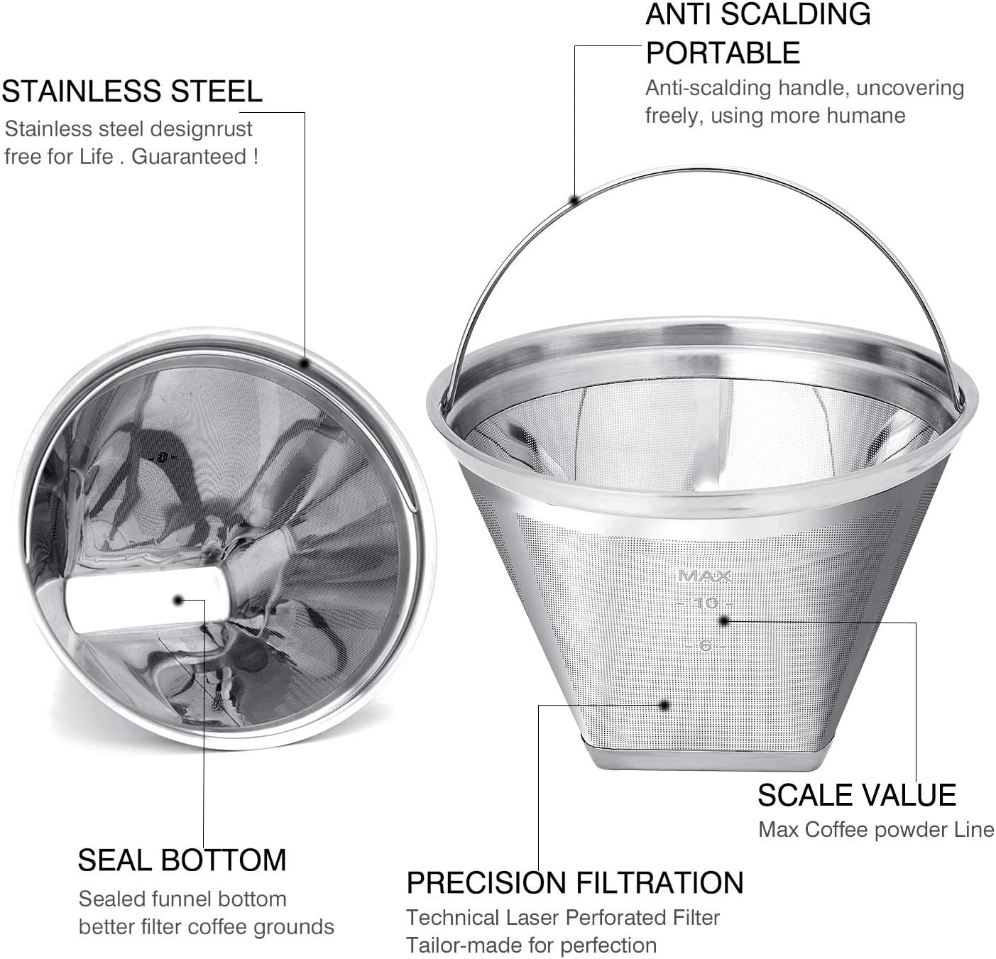 Reusable #4 Cone Shape Coffee Filter Permanent 6-10 Cup Stainless Steel Coffee Filter for Cuisinart Maker Ninja Coffee Bar Brewer -BPA Free