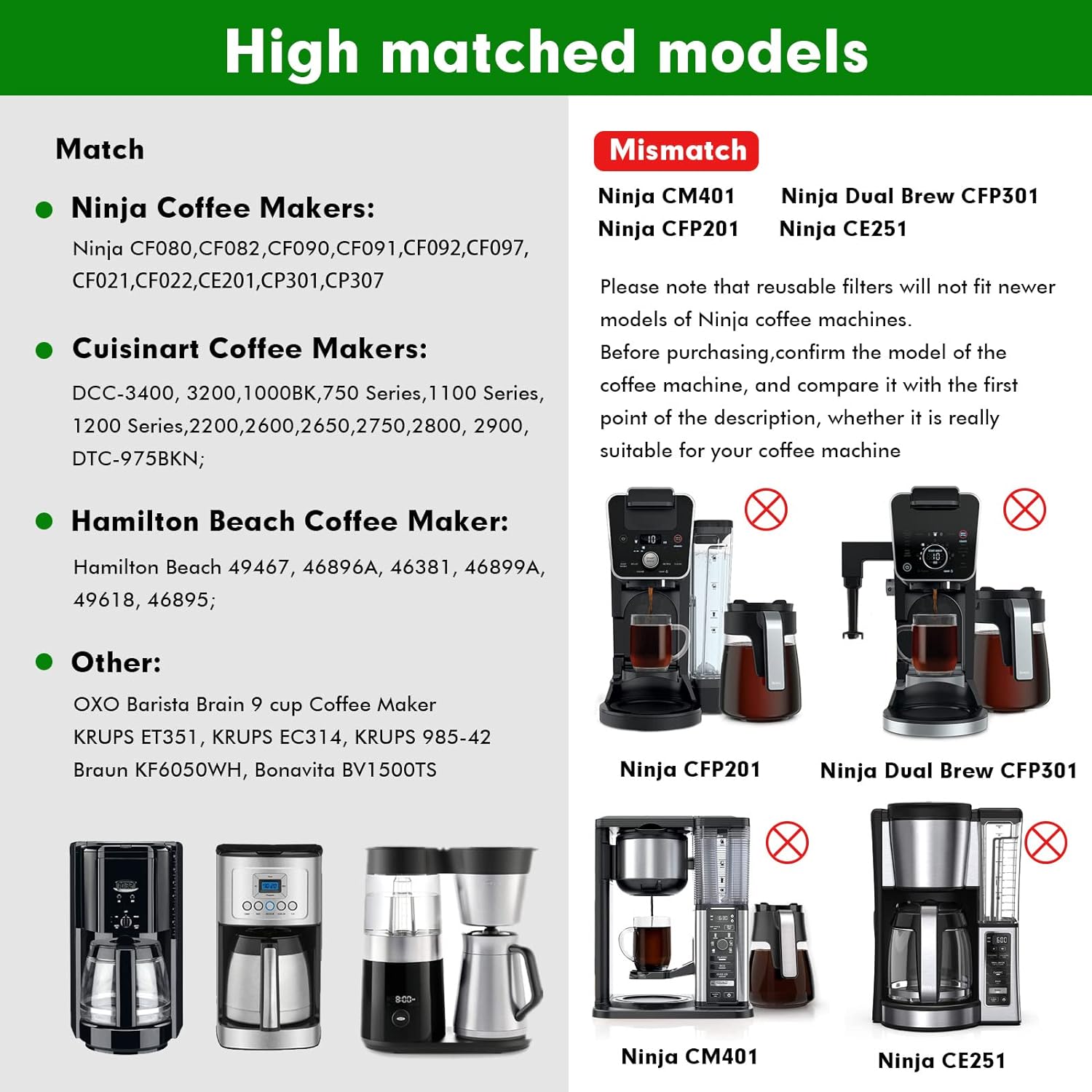 - Confirm the Model of the Coffee Machine Before Purchasing : Only fit: Ninja CFP301 CFP201 ,CF080, CF082, CF090, CF091,CF092,CF097,CF021, CF022,CE201,CP301,CP307; DCC-3400, 3200,1000BK,750 Series,1100 Series,1200 Series,2200,2600,2650,2750,2800, 2900, DTC-975BKN; Hamilton Beach 49467, 46896A, 46381, 46899A, 49618, 46895;((Not compatible to Ninja CFP201,CFP301, CFP251, CFP200)