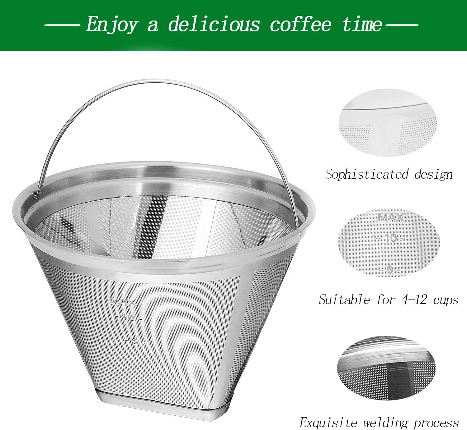 - SAVE YOUR MONEY: There is no denying, the disposable filter is convenient.In the long run, reusable coffee filters reduce the need for a lot of paper filters, which not only reduces tree felling, but also saves money.