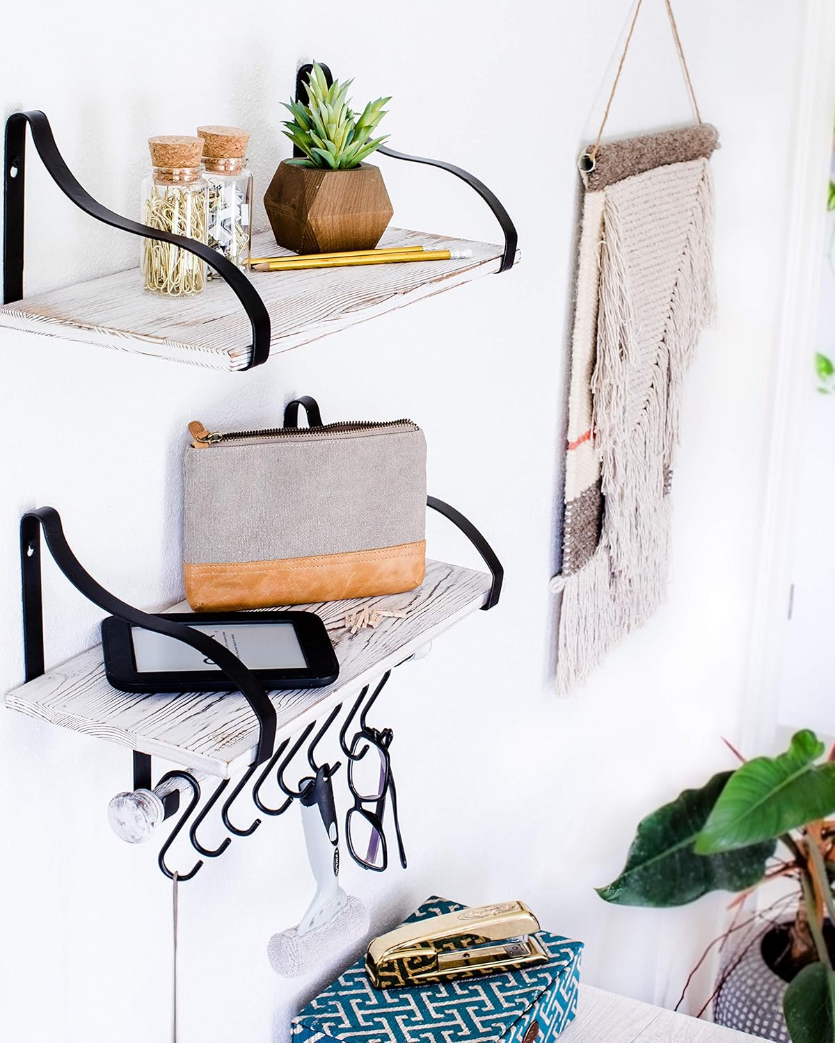 - RUSTIC DURABILITY: 16.75” long x 7.5” deep shelves made out of solid pine wood - not particleboard, pressed wood or flimsy wood such as balsa - for authentic beauty and durability, then finished with a distressed white washed which is smooth to the touch. These rustic shelves will complement modern, vintage barn wood, shabby chic and rustic decors alike and can be used as spice racks or to add storage to your kitchen, bar, bathroom, or laundry room.