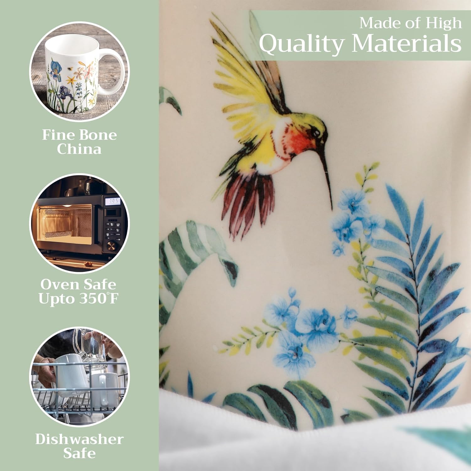 Maison d' Hermine Coffee Mug with Handles Fine Bone China Mugs Pack of Two Tea Cups for Hot Beverages Cappuccino Latte Home Restaurant Office Perfect for Gift (Tropiques, 12 Ounce)