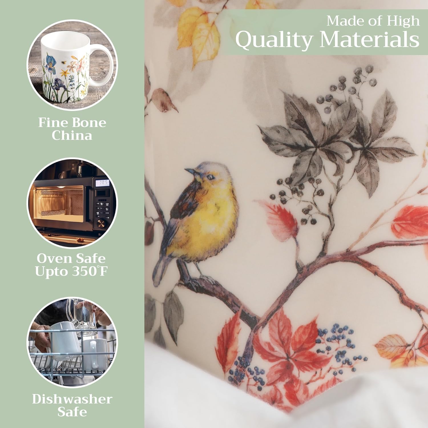 - Easy Care & Maintenance: Microwave, dishwasher, and oven safe up to 350°F. These bone china mugs are built for convenience and durability, making cleanup and reheating simple without compromising on quality