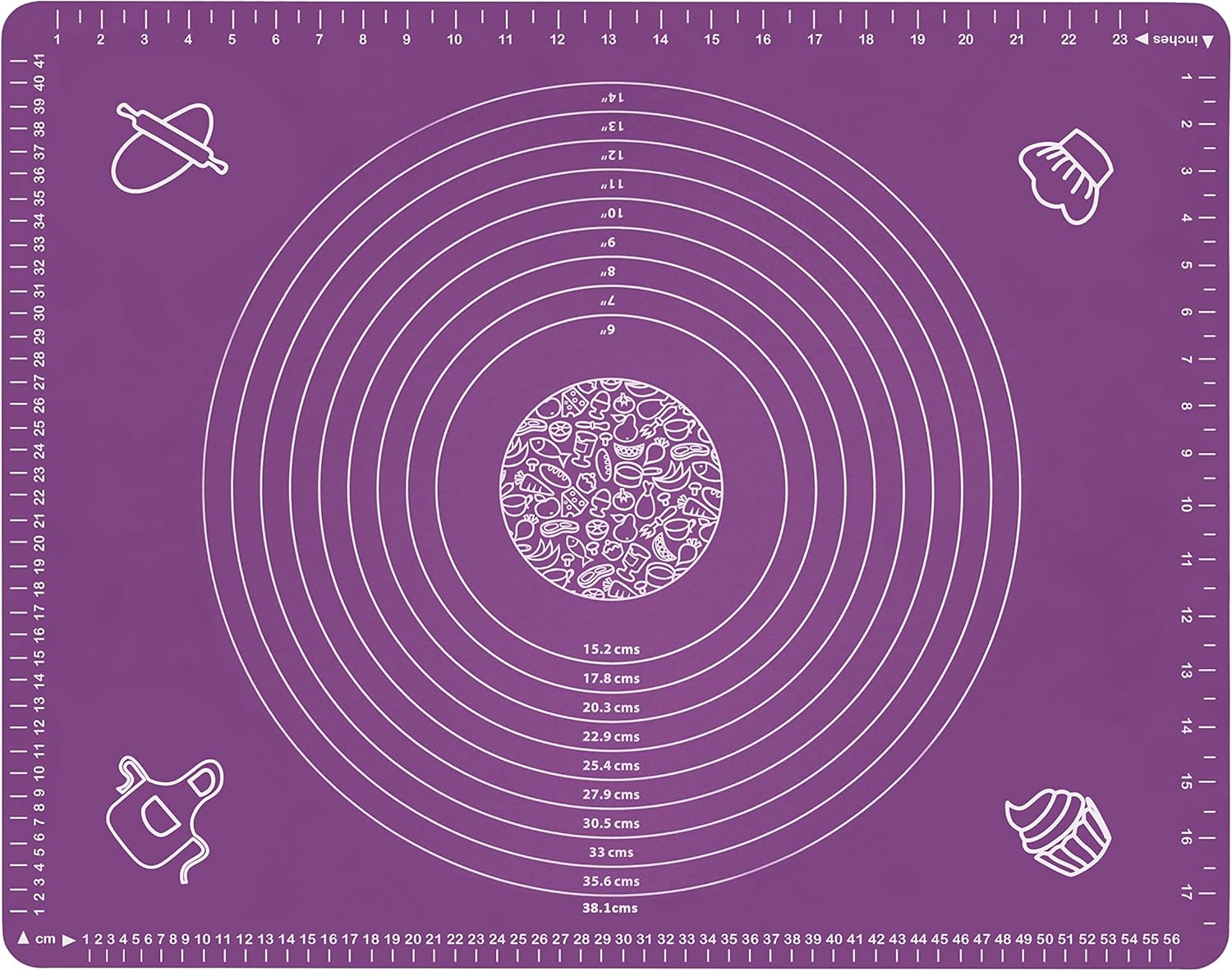 Silicone Baking Mat for Rolling Pastry Dough with Measurements, 25.6 x 17.7 BPA Free Non stick and Non Slip Purple Table Sheet Baking Supplies for Bake Pizza Cake