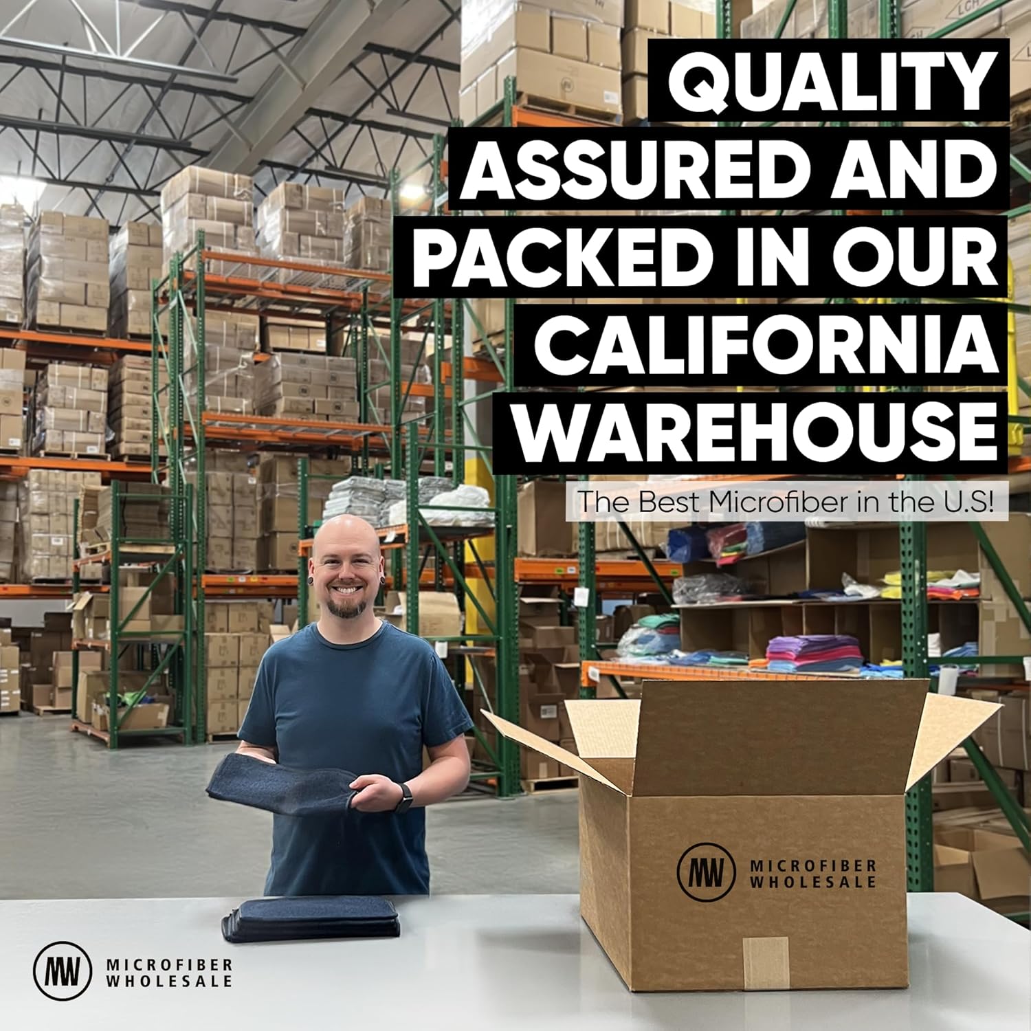 Bulk 12” X 12” All Purpose Microfiber Towels Wholesale - Case Quantity (400 Count) | No Fraying | High Density Microfiber | Zero Chemical Cleaner | Long-Lasting (Black)